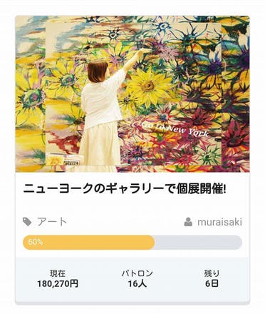 2017/02/13 18:27むらいさきです! クラウドファンディング終了まで、あと6日となりました! 只今、60%まで来ています!! 皆さんがたくさん応援してくださったおかげです。 本当にありがとうございます。 作品輸出費、渡米費ともに 一番安くで解決する方法を探しています(*^^*) ギャラリー様とも相談し準備を進めています。 お金がどんどん動く状況に心がザワザワ(笑) はじめてのことだらけで、わくわくドキドキな毎日です(笑) 阪急うめだでの催事にも、たくさんの方が観に来てくださり感激です。 本当にたくさんの方に応援していただいてるんだなぁと。 今回の挑戦を通して実感しました。 残り6日間、引き続き応援よろしくお願い致します✨ むらいさき もっと見る