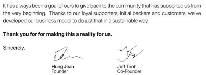 私たちはプロジェクトの当初から支援をしてくれていたこのコミュニティに恩返しをすることを目標としてきました。御支援くださる多くの皆さま方からに支えられながら、これからも持続的にビジネスを発展させていけるように努力を重ねて参ります。