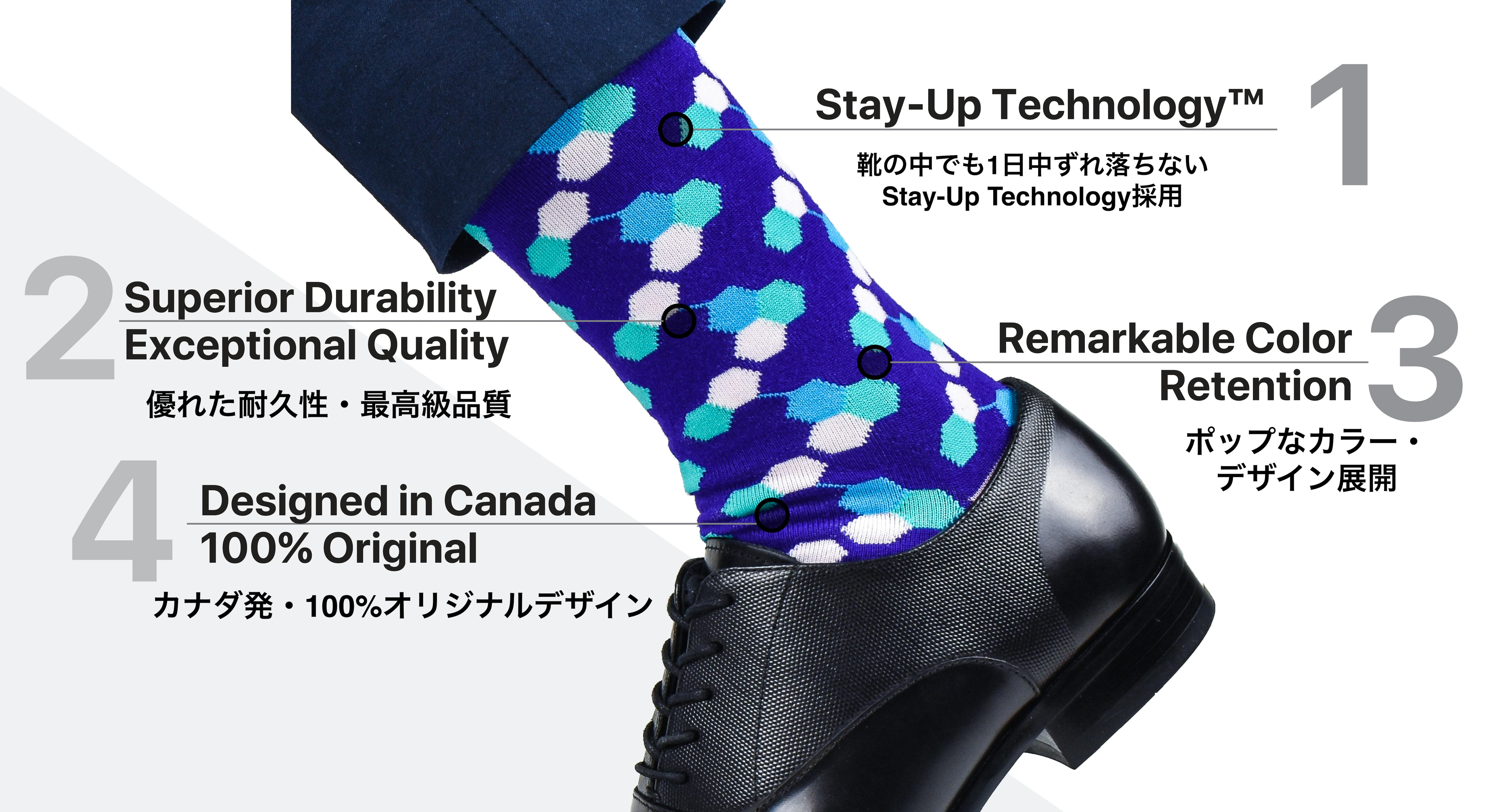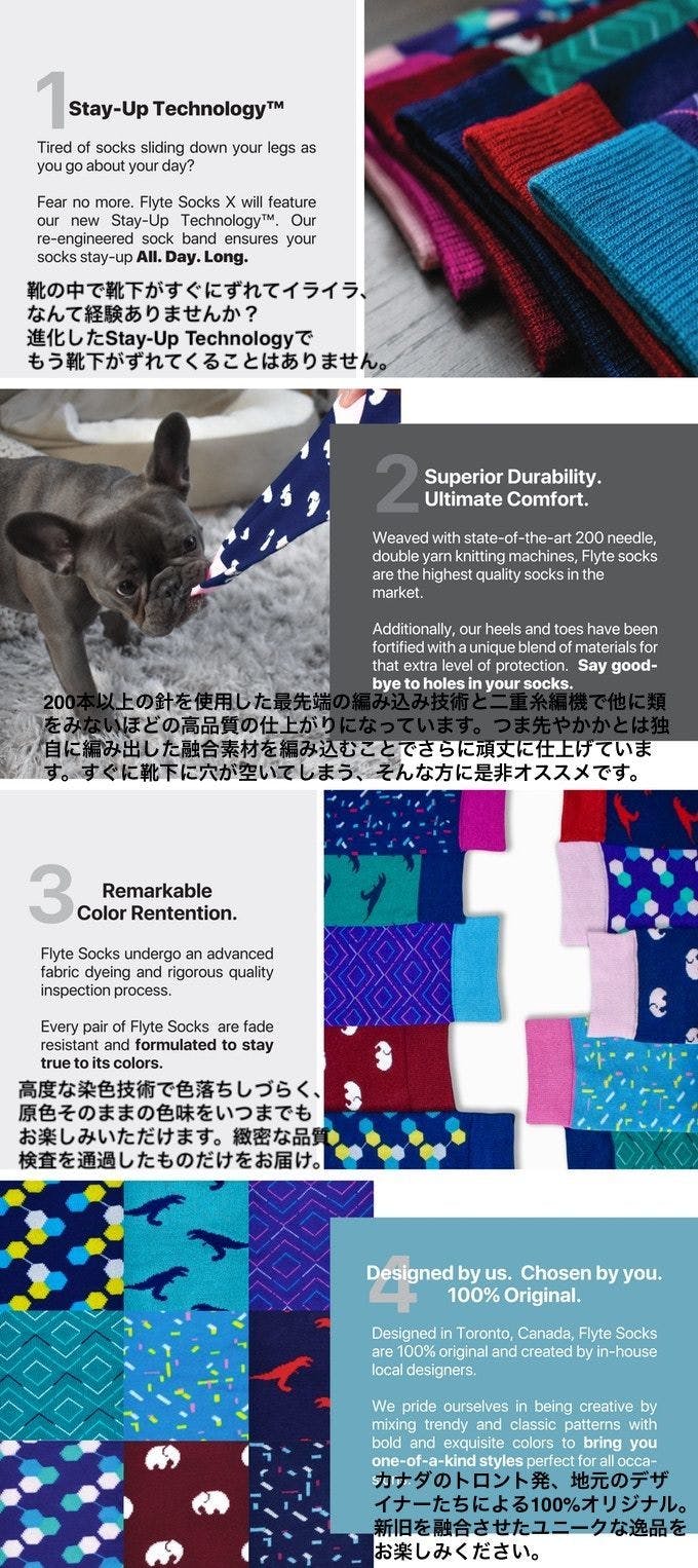 このページの商品はカナダの「Flyte Socks」が売買契約における販売者となり責任を持って遂行しますが、海外との取引になる点は予めご注意ください。