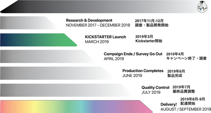 また、本製品は量産体制が確保された製品になり、募集期間終了後はできる限り早くお手元に届けられるよう努力いたします。ただし、世界的に大量の注文を受けた場合や量産計画の変更、その他予期しない不具合等での仕様変更や生産行程変更による遅延、生産工場からの発送に時間がかかることによる遅延が発生する場合があります。