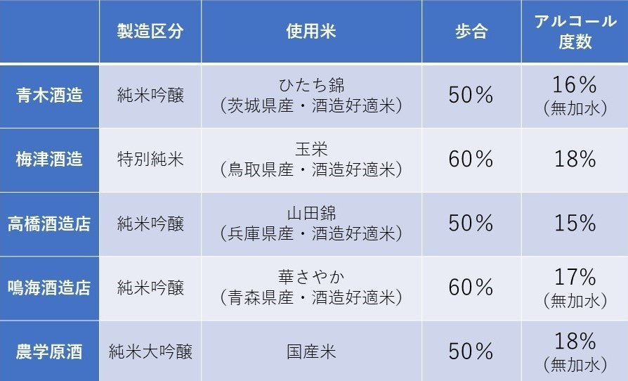 本プロジェクトでは、我々が選抜した5本の日本酒がリターンの品です。