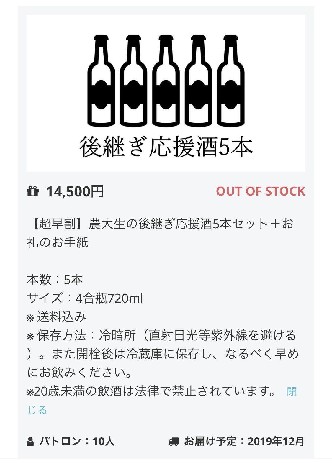 大変多くのご支援を承り、下記リターンが完売致しました。御礼申し上げます。