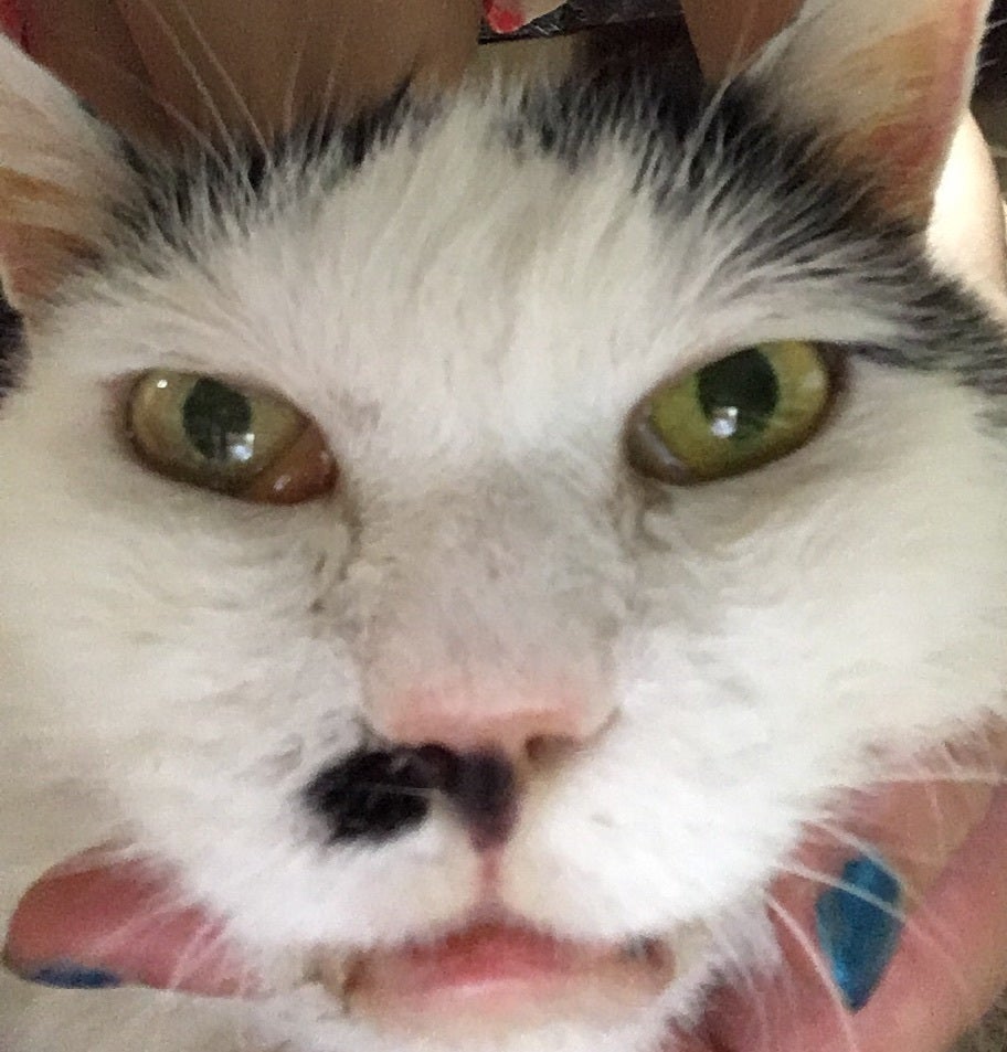 目の腫れと黄疸の炎症が良くなり、膿や涙、鼻水も止まってスッキリ顔に!生死を彷徨ったのに、大好きなゴハンをまた食べさせてあげられるよーになって、ほんとに嬉しくて、ホットして涙が出ました。。