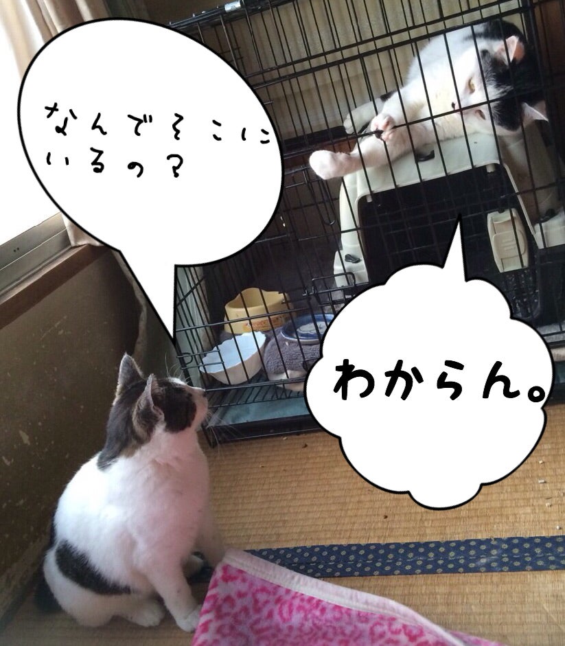 マロちゃんはすぐおうちに慣れてくれましたがウシは怖がって噛みつき、私の手が血まみれ事件になったのでケージで野良抜きからのスタートです。笑