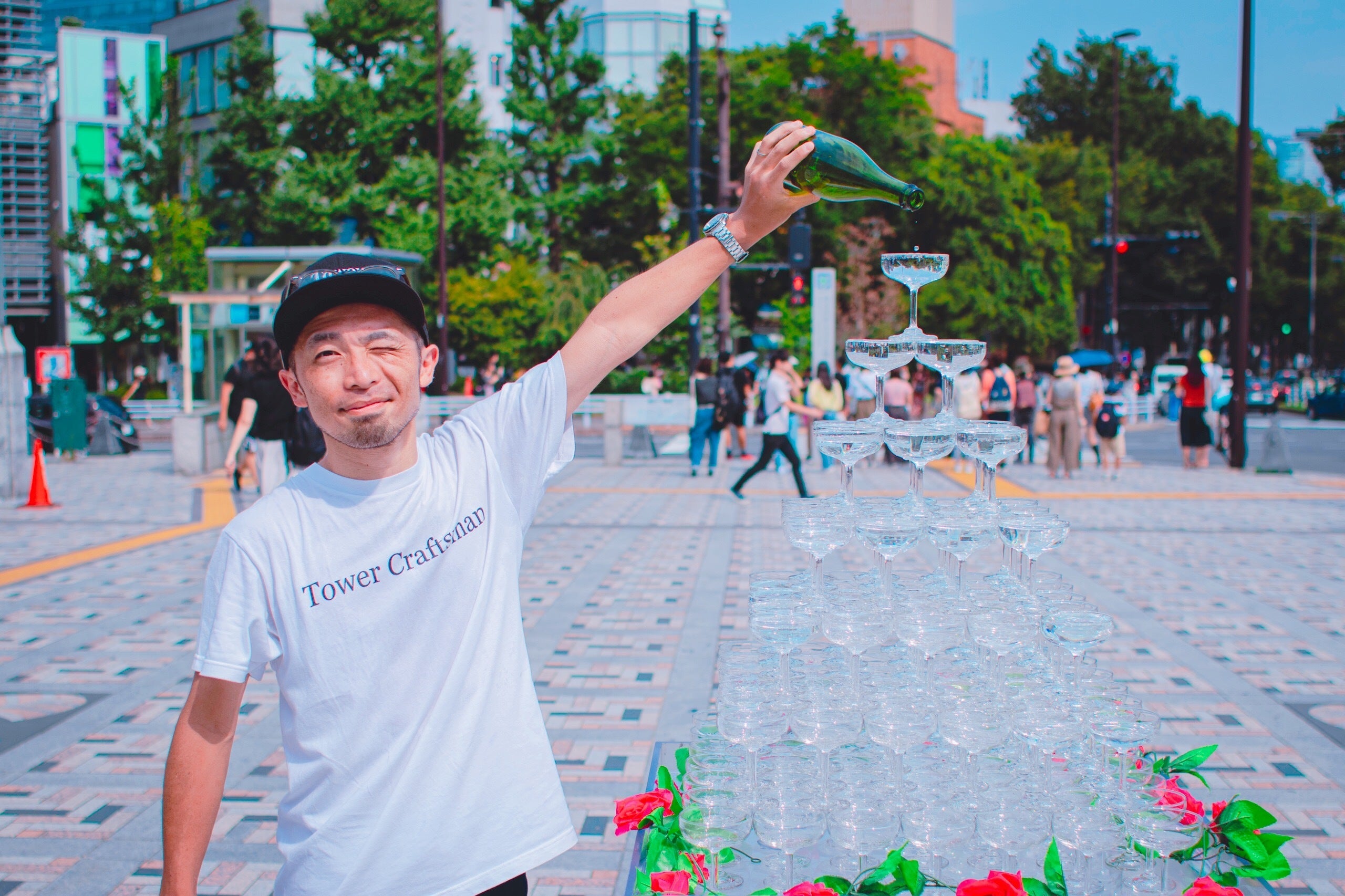 今現在は様々な場所でシャンパンタワーを作りながら、シャンパンタワーの認知を広める毎日です!