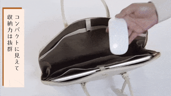 ●ラップトップPCを持ち運べるサイズのビジネスバッグであり、そのPCをスマホ充電用の二次電池として利用可能である