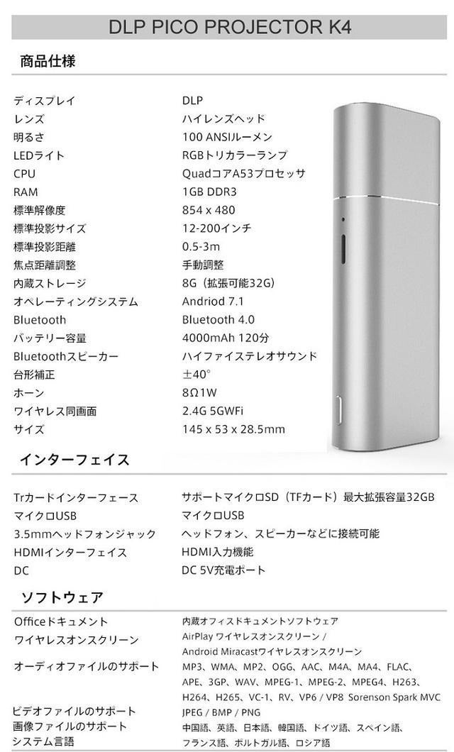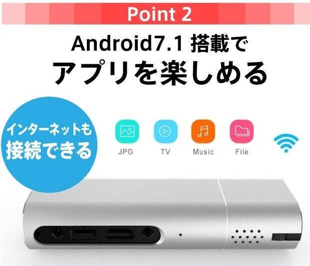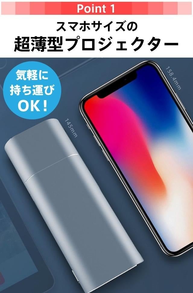 ① コンパクトサイズで、 ポケットに入れて持ち運びができるモバイルプロジェクター!