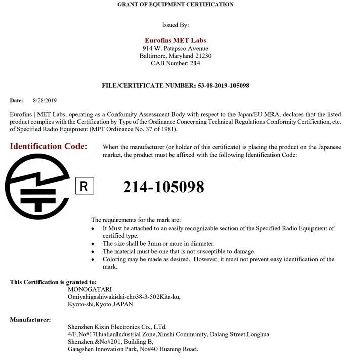 【技適認証 取得済】