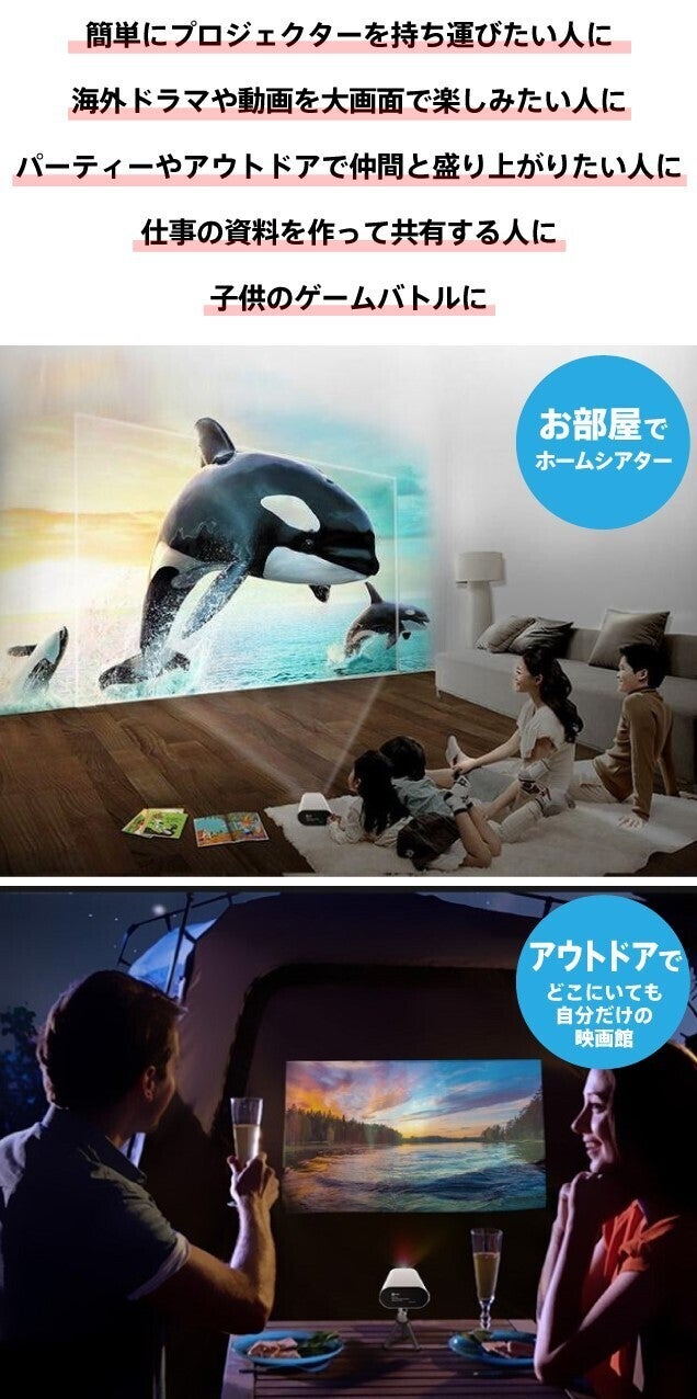 手軽に持ち運んで大画面で映画やスポーツ観戦をお楽しみください。