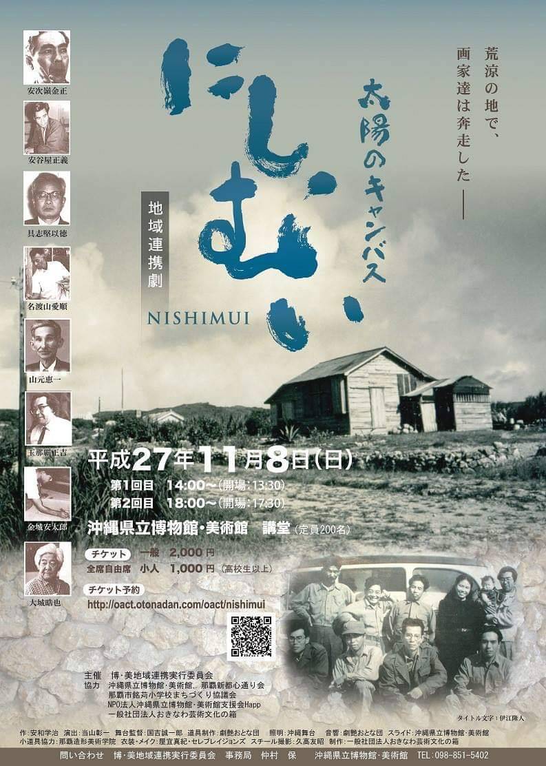 2015年、美術館が主催する市民劇「太陽のキャンパス~ニシムイ~」に参加しました。戦前戦後に沖縄の美術界で活躍した画家たちの物語をもとした作品です。沖縄について何の知識もなかった私は、このガイド活動やお芝居を通して沖縄の人たちと関わることで、皮膚感覚で沖縄の人たちの沖縄に対する誇りと愛を教えてもらいました。