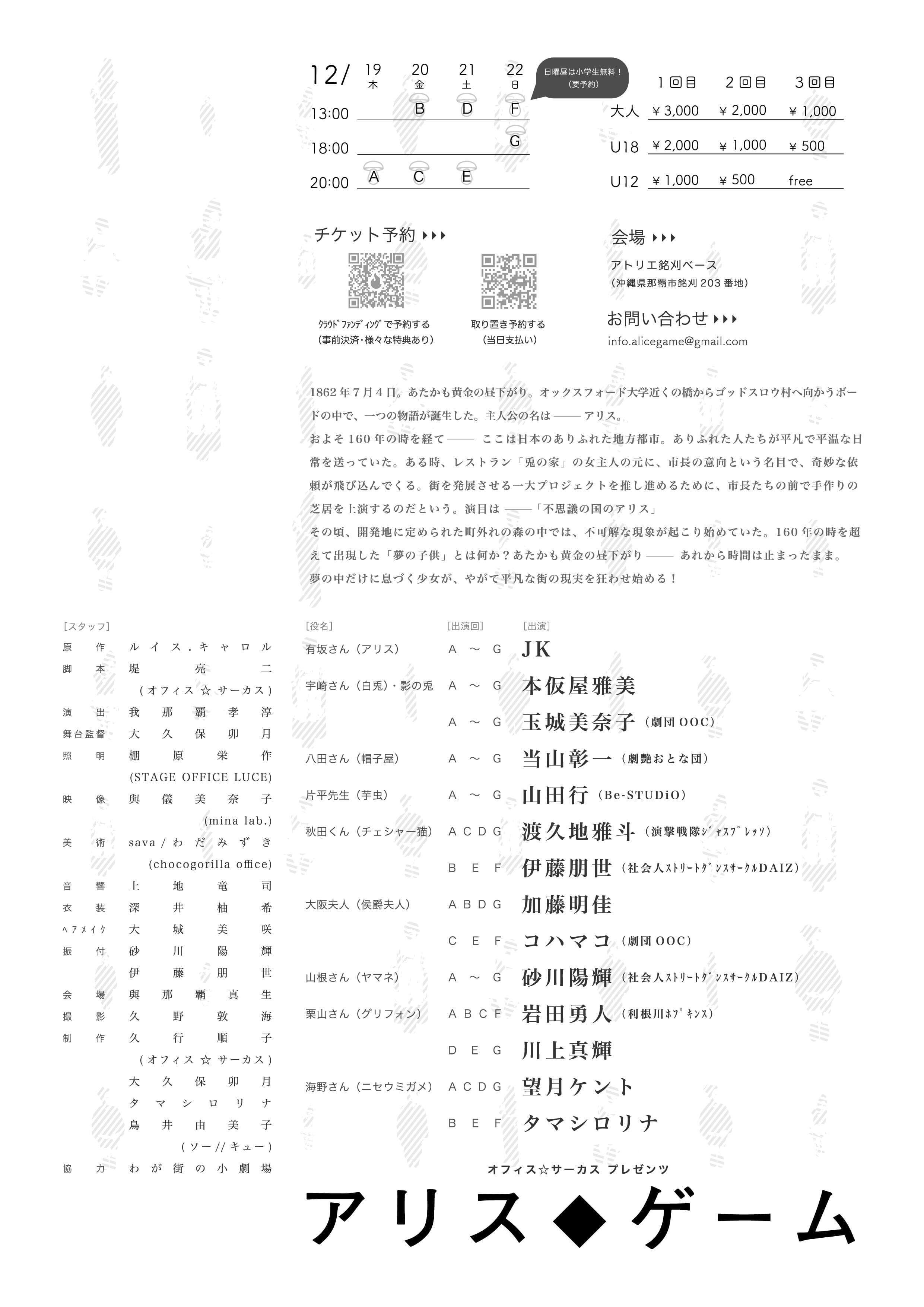 この「アリス♦ゲーム」は、ここ沖縄で"演劇"をきっかけに知り合えた年齢も経験も専門も違う尊敬できる素敵な人たちと結成した、まさに「ちゃんぷる~」な演劇プロジェクトです