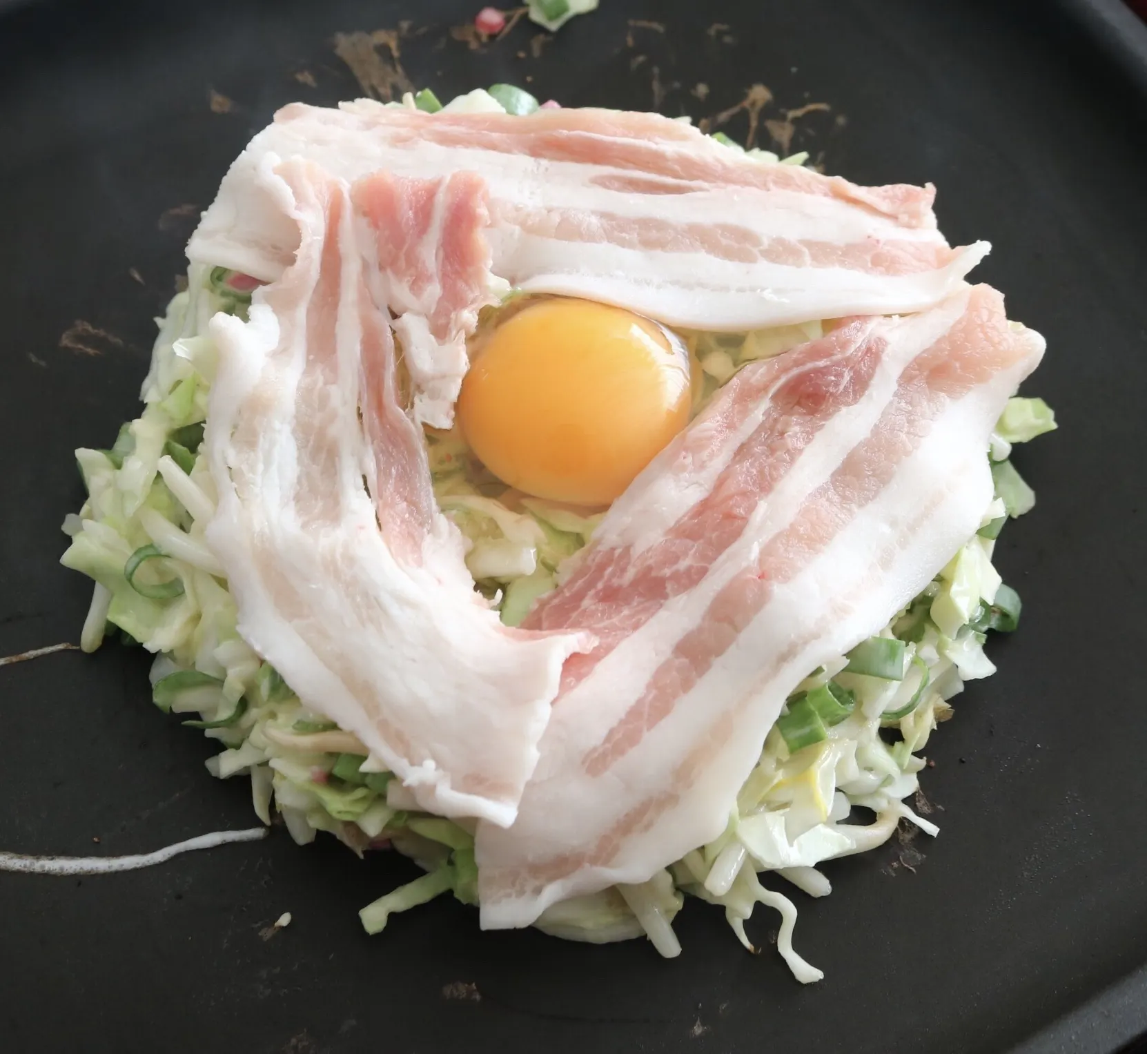 太陽焼き 卵と豚バラの定番お好み焼き
