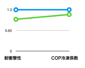 - ● R134a環境に優しい冷媒の採用