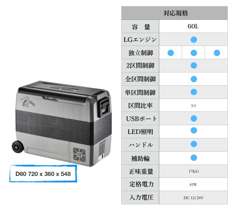 - ● ポータブル冷蔵庫に最適設計