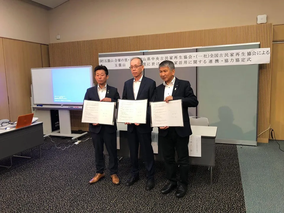 これまで一般社団法人富山県中央古民家再生協会として富山県内の古民家等に係る相談を受け、調査等を実施してきました。本年7月には一般財団法人五箇山合掌の里と一般社団法人全国古民家再生協会の3社にて五箇山 合掌の里に於ける古民家活用に関する連携・協力協定を調印し地域団体と共に地域を元気にするべく活動を実施しています。