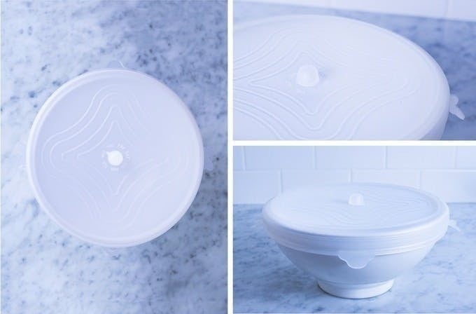 食器に「Unilid」をかぶせると、たちまち保存容器に変身します。