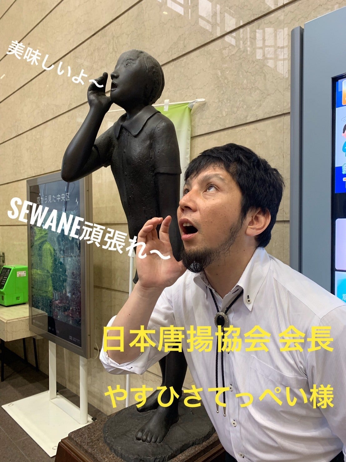 やすひさてっぺい会長より激励を頂きました!日本唐揚協会をよろしくお願いもうし揚げます!