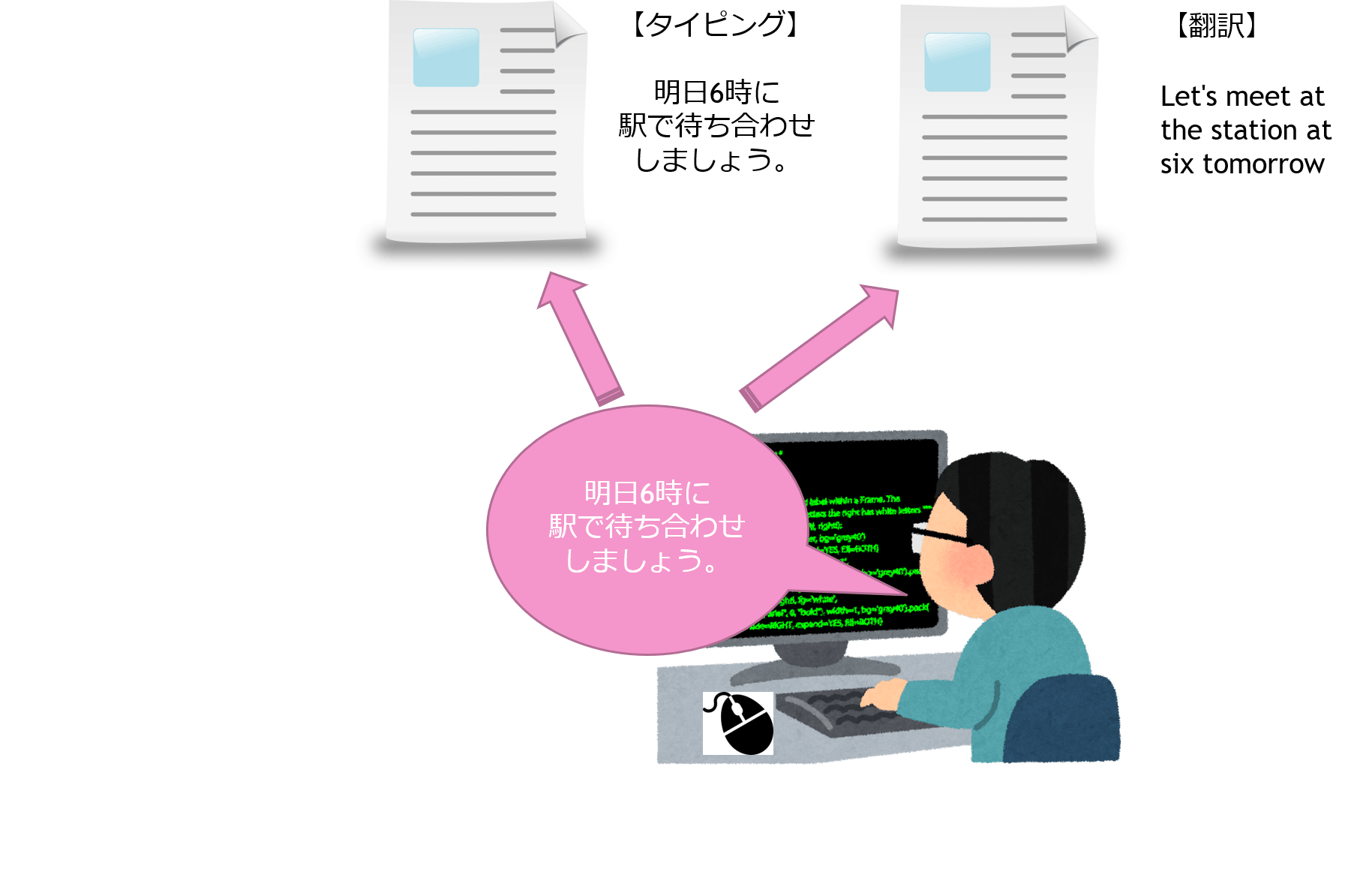 きます。PCの画面上にカーソルがある部分に音声データをテキストに変換しタイピングします。