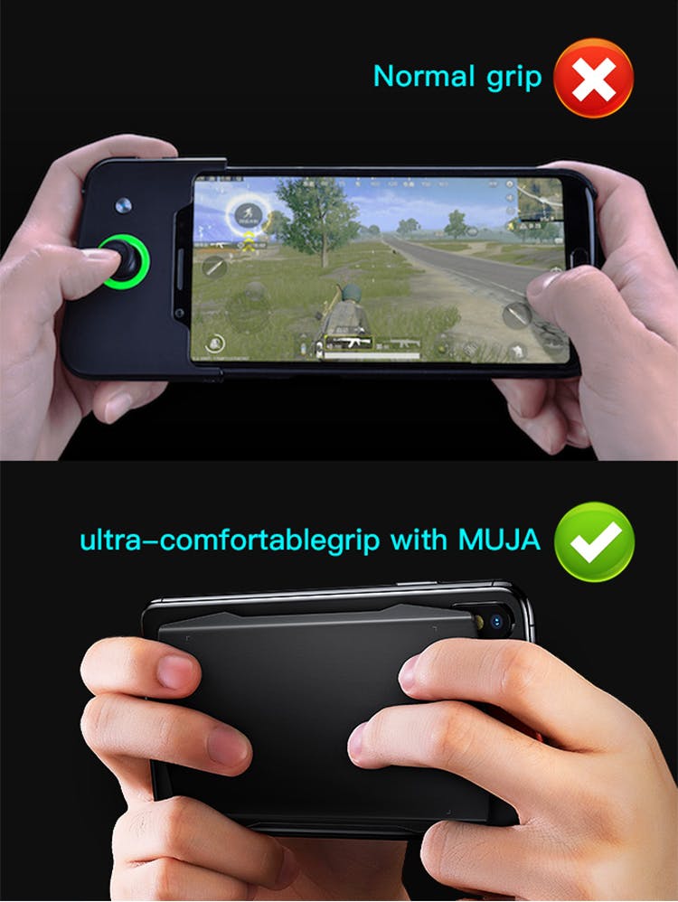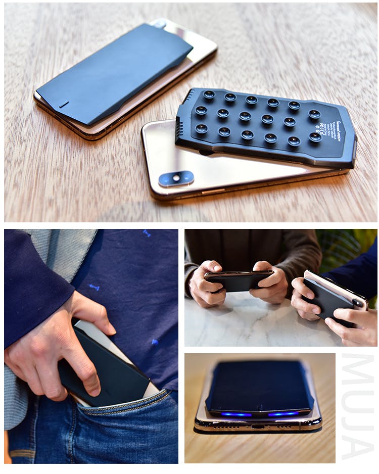MUJAは貼り付ける側の面に吸盤17個が並んでおり、スマホの背面をMUJAに軽く押すと傷つけずにしっかり吸着できます!快適なフィット感が得られ、いつでもどこでも本格的なゲームを楽しめます。