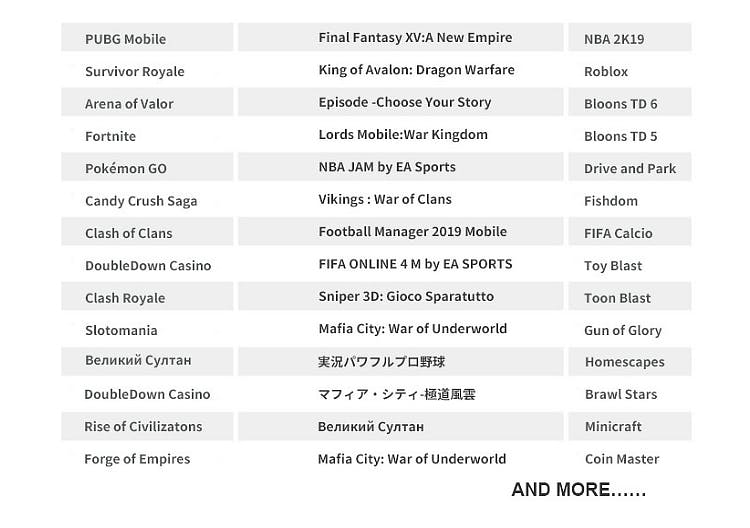 PUBG mobile、Survivor Royale、Arena of Valor、Fortnite、Pokemon GOなど,100種類以上の人気のあるゲームで動作するなど幅広く使えるのも魅力です。