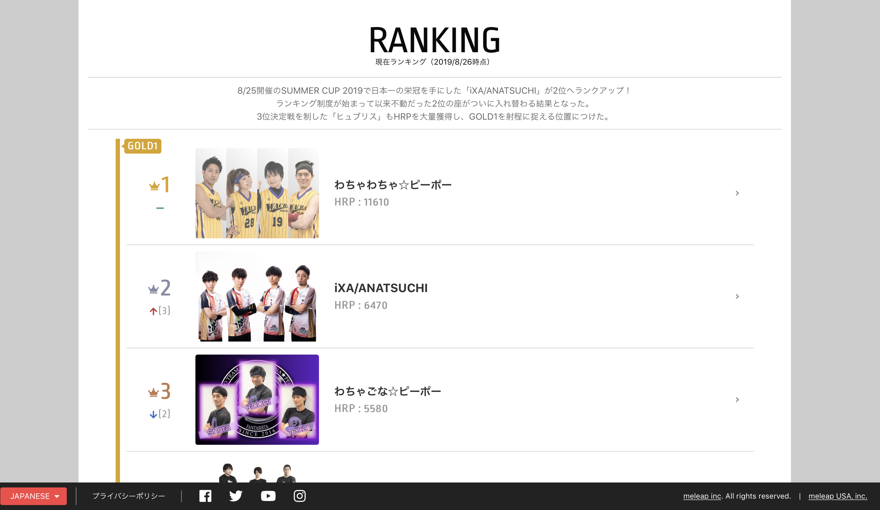 参照:HADO日本ランキング