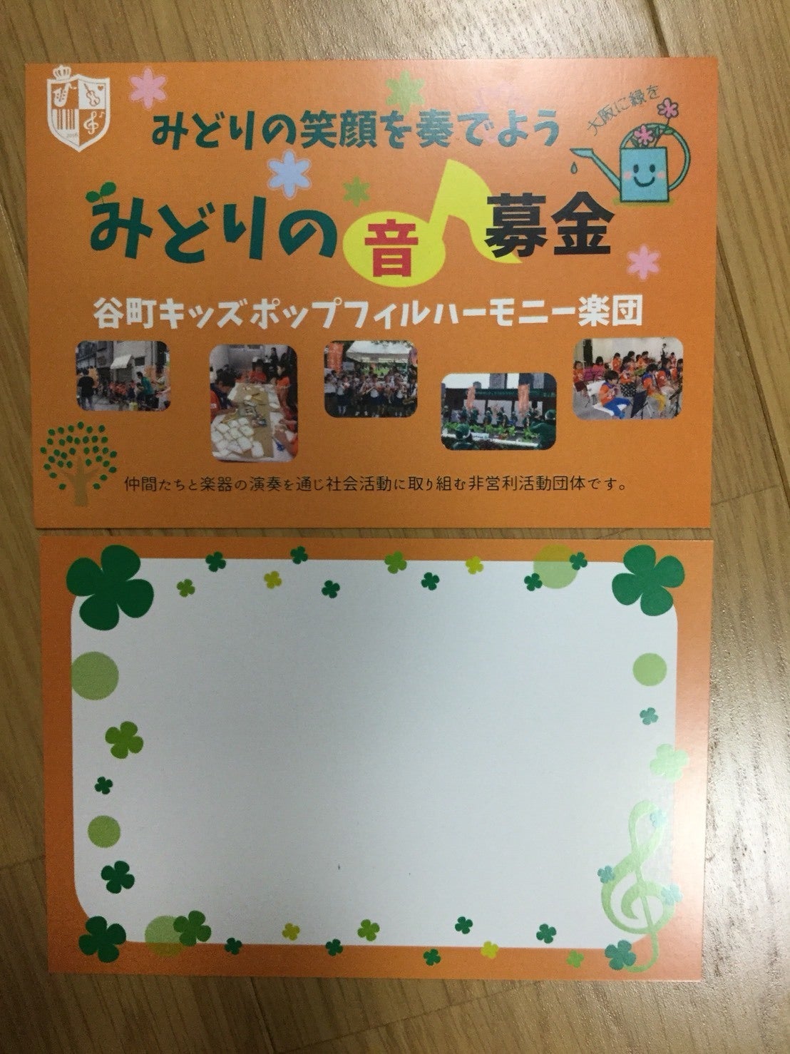 谷町キッズポップフィルハーモニー楽団の子どもたち手書きのメッセージカード(1枚)