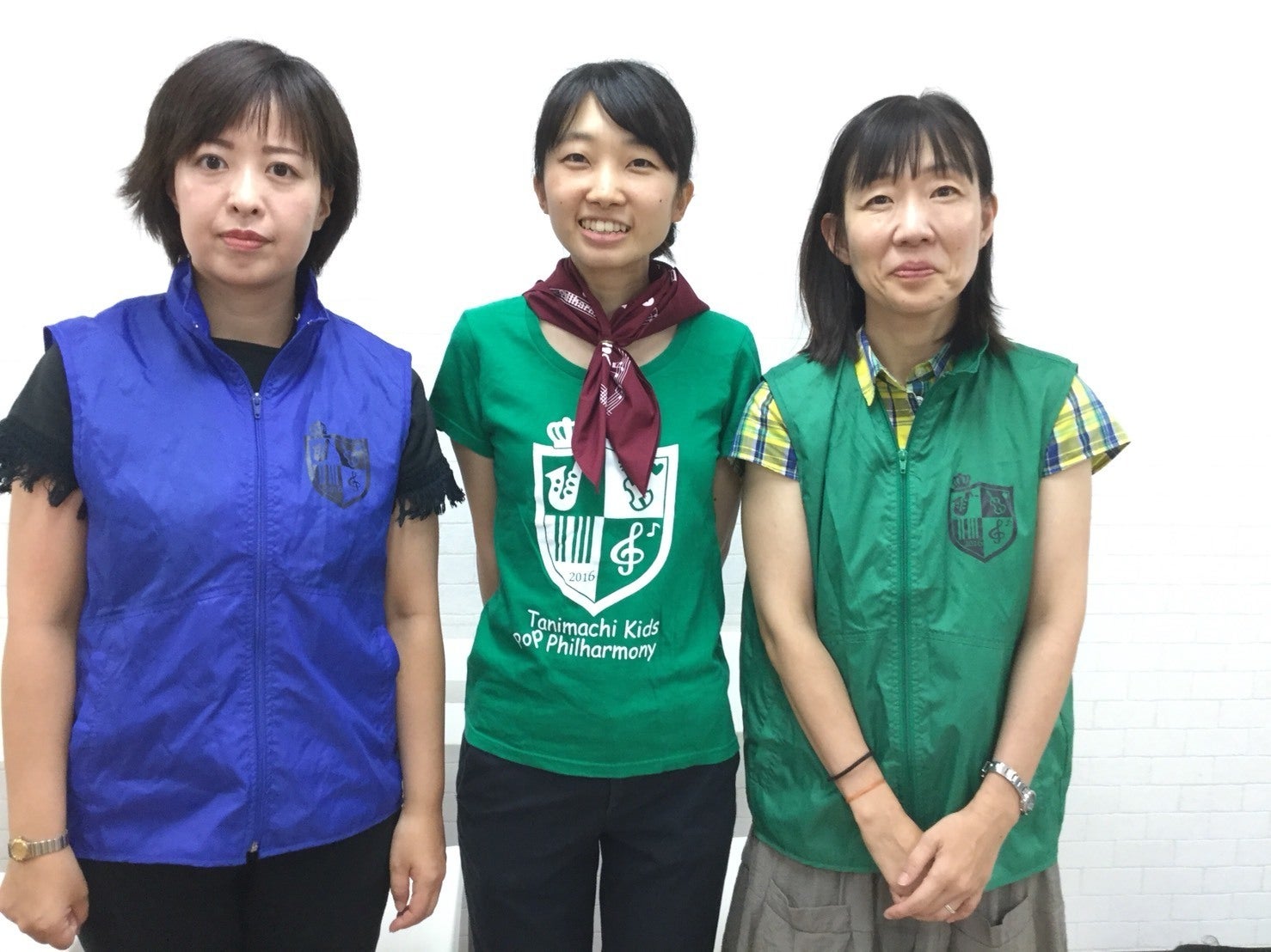 初めまして、谷町キッズポップフィルハーモニー楽団の応援隊をしている、応援団長の北原さとみと、運営部の伊藤えりです。
