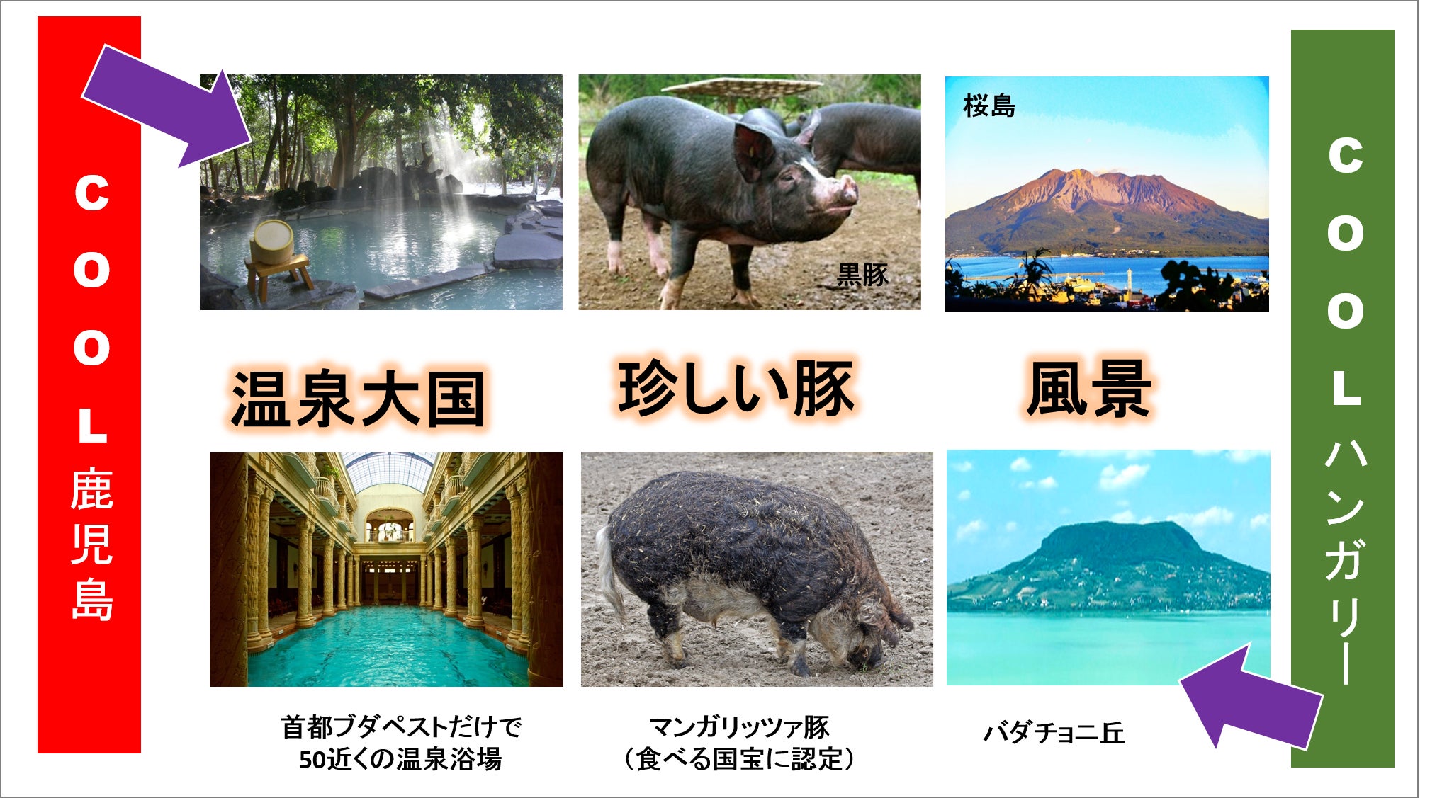 みなさま、ハンガリーといったらどんなイメージを思い浮かべますでしょうか?なかなか難しいと思いますが、モンゴル系民族がルーツであったり、日系企業が東欧の中でも特に多かったりと意外と日本の繋がりがございます。そして私が住む鹿児島県とは、桜島を彷彿とさせるバダチョニ丘、黒豚のように貴重なハンガリーの国宝豚マンガリッツア豚、世界有数の温泉大国といったように多くの共通点が…
