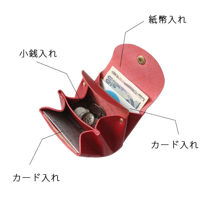 紙幣やカード、小銭をコンパクトなサイズにまとめることができます。
