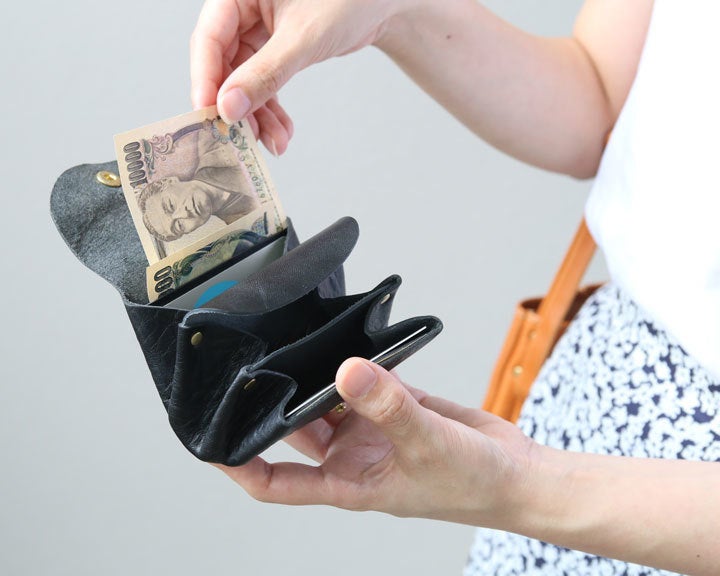 小さな財布にありがちな、お札を折り曲げて収納する悩みを解消。