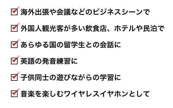 すると、あなたが話した日本語は相手の耳には英語に自動翻訳、相手が話した英語はあなたの耳には自動で日本語に翻訳されます。