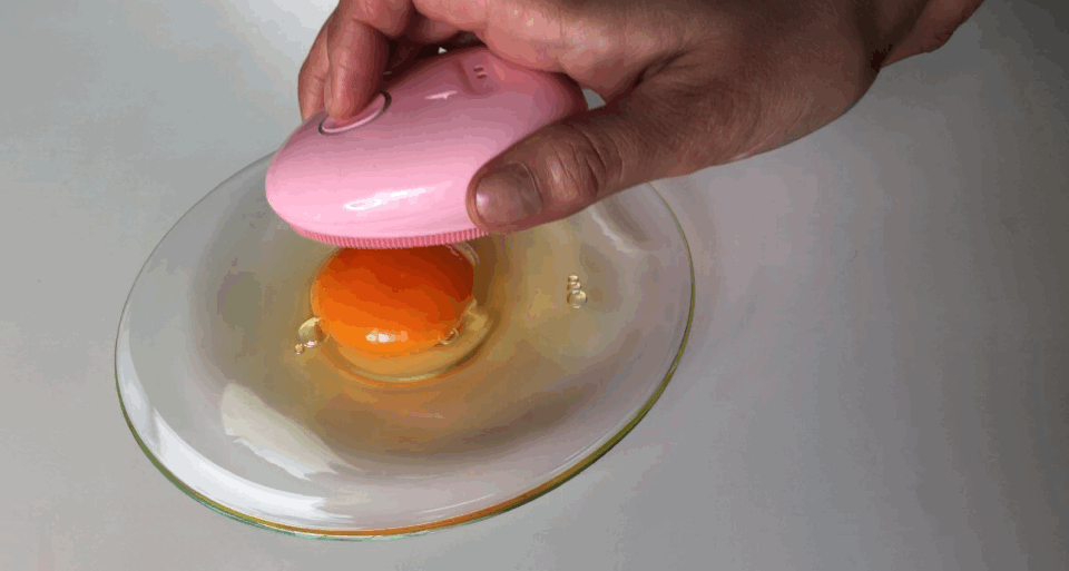 実験:卵の黄身にSkinBabyをあてて動かしても、