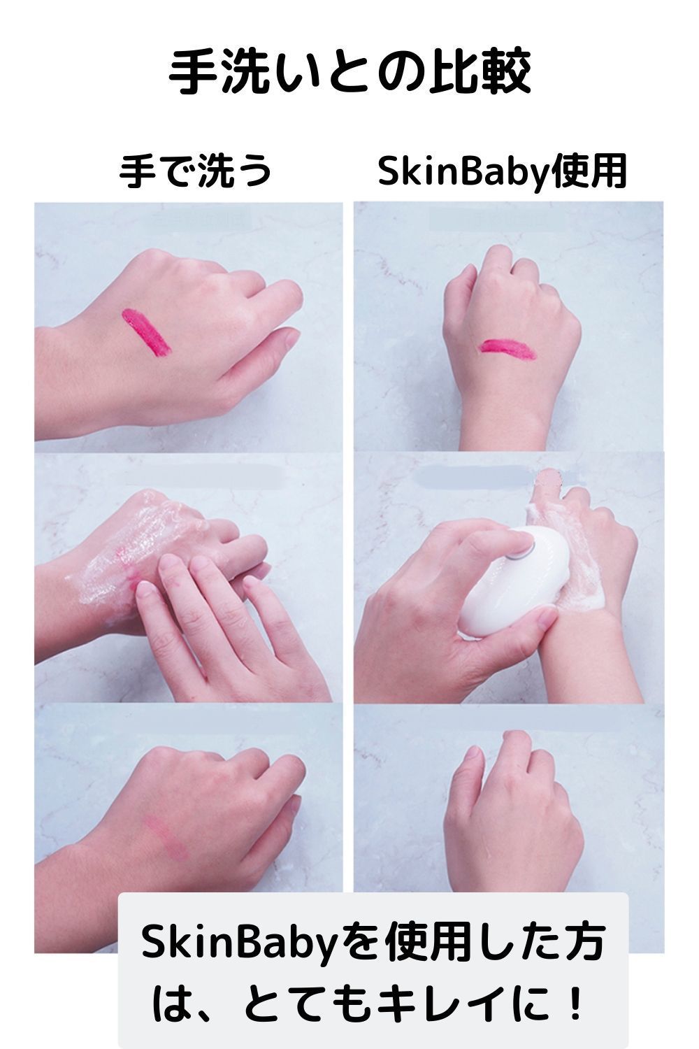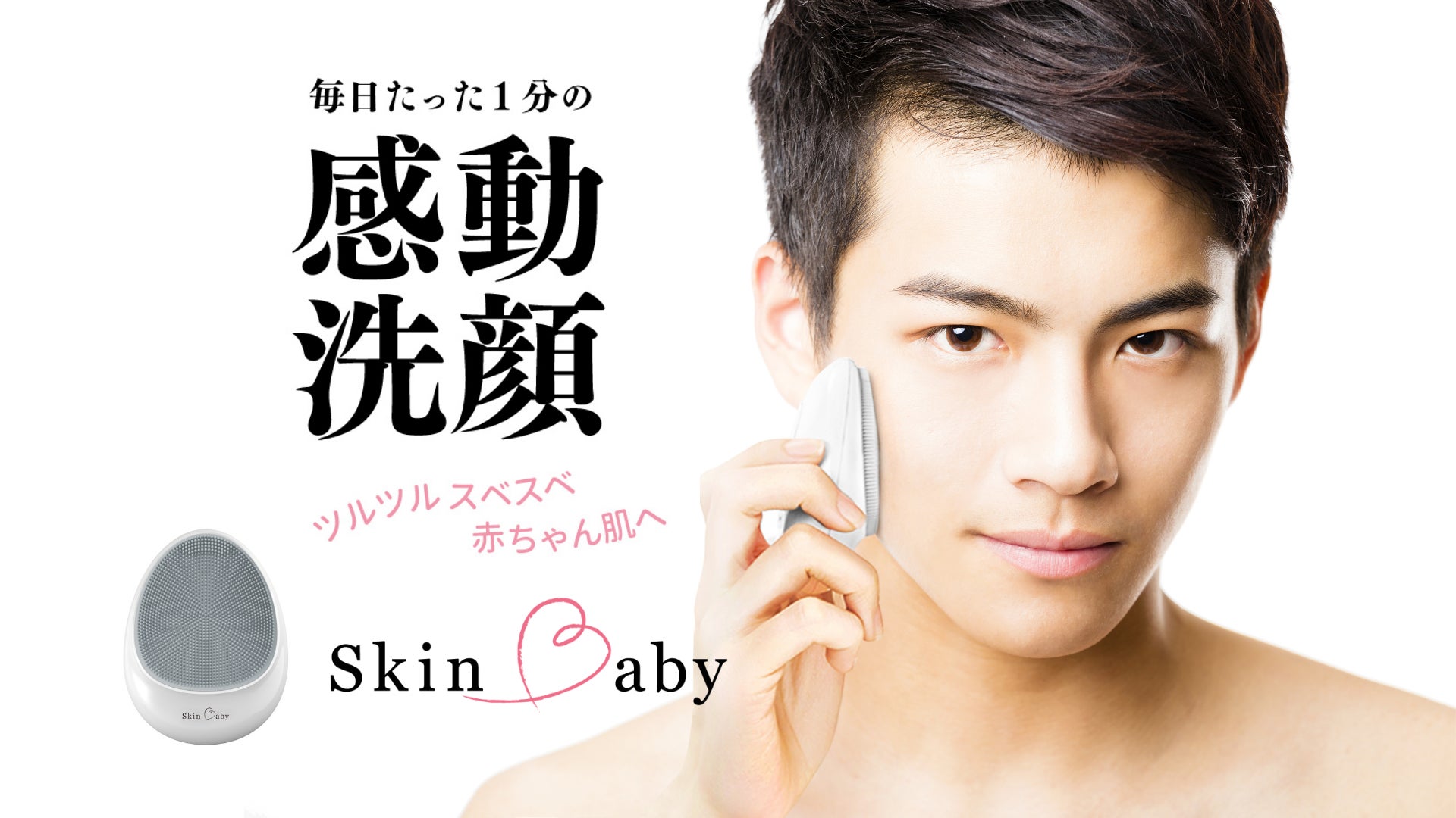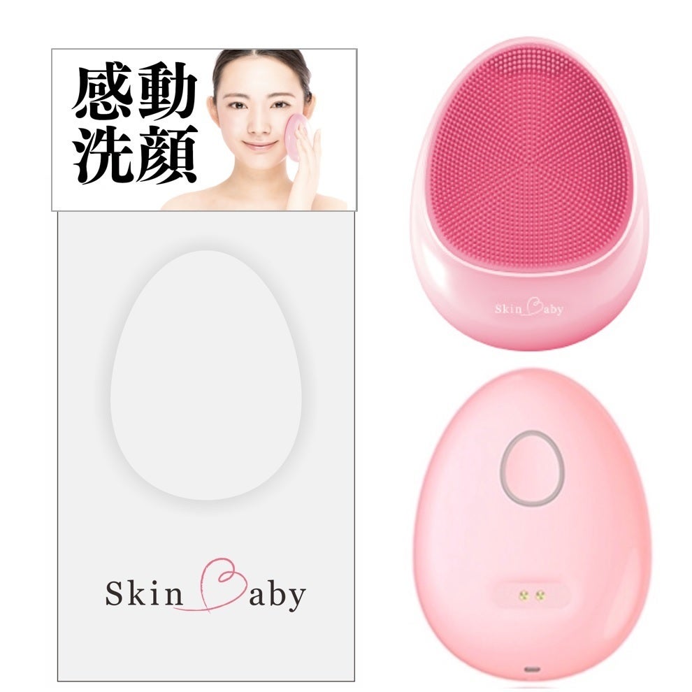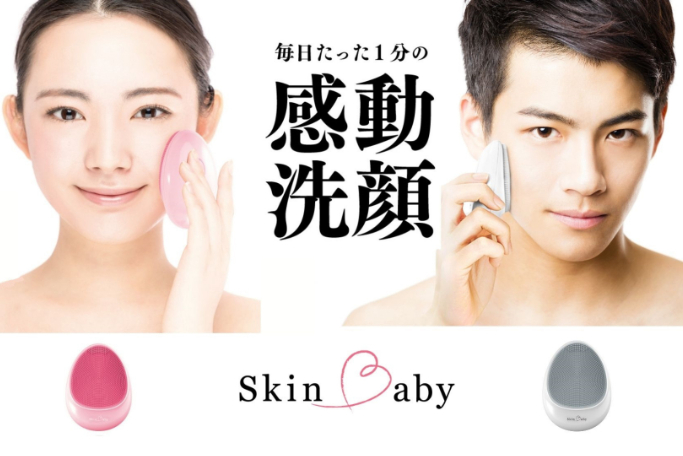 まずは、こだわって開発した次世代シリコン超音波洗顔器「SkinBaby」です。