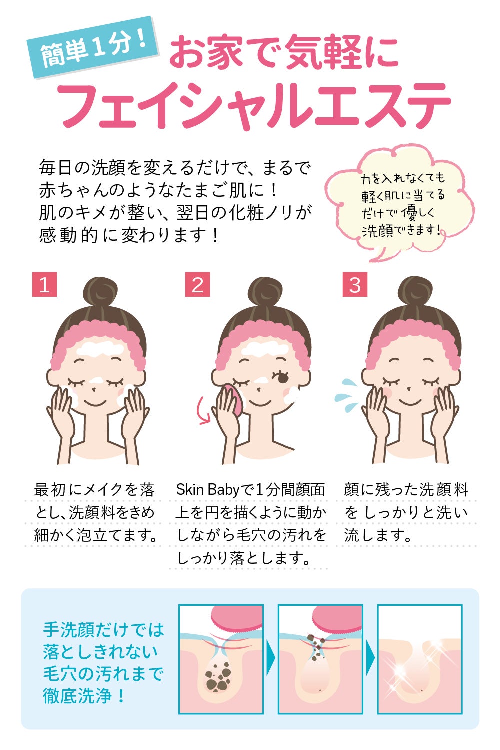 使い方は簡単!いつもの手洗顔をSkinBabyに変えるだけ。
