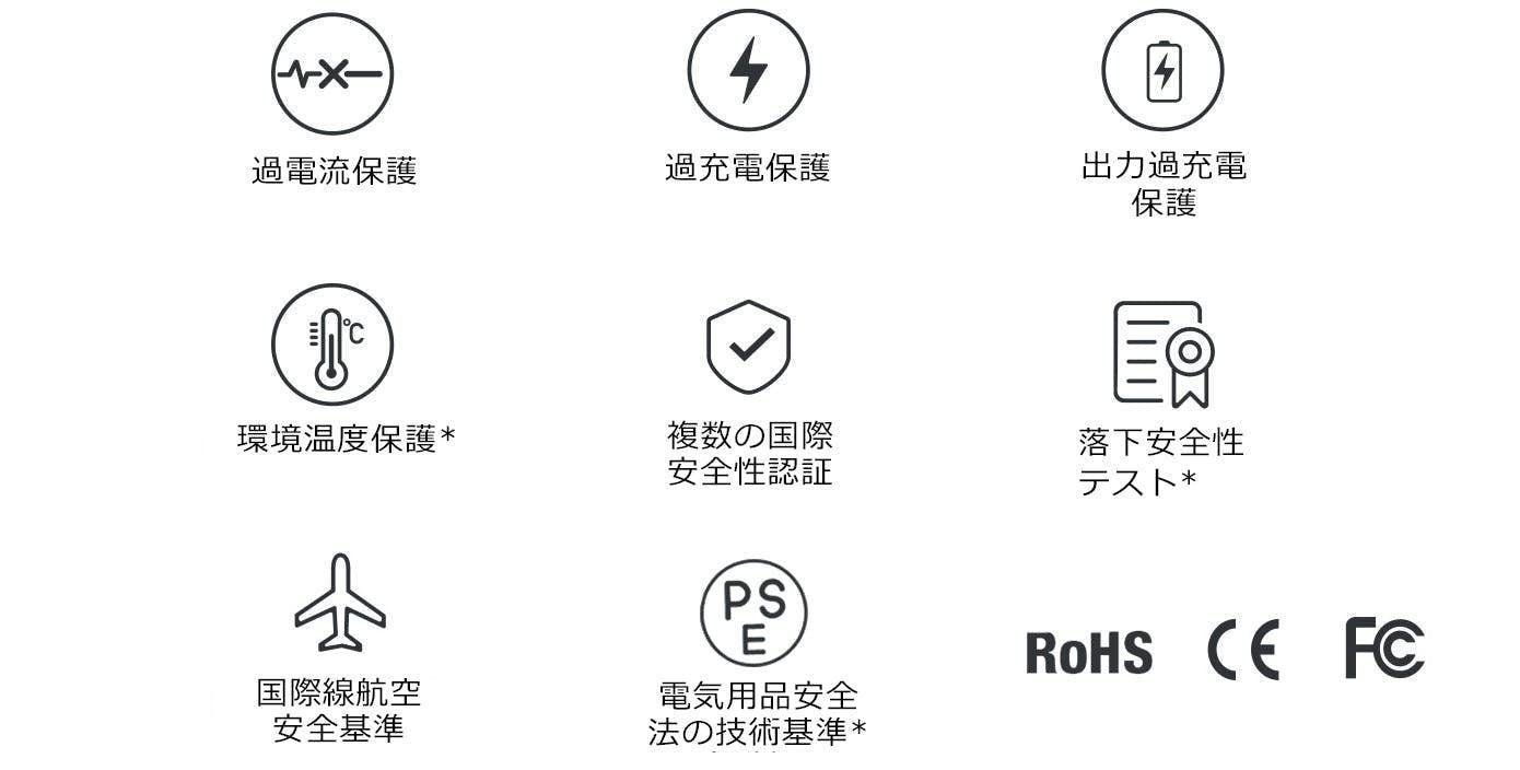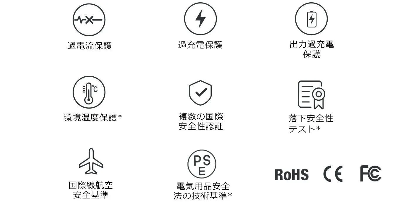JIS基準適合確認を行い、輸入事業者届けを提出しております。モバイルバッテリーにPSEマークが表示されておりますので、安心してお使いいただけます。