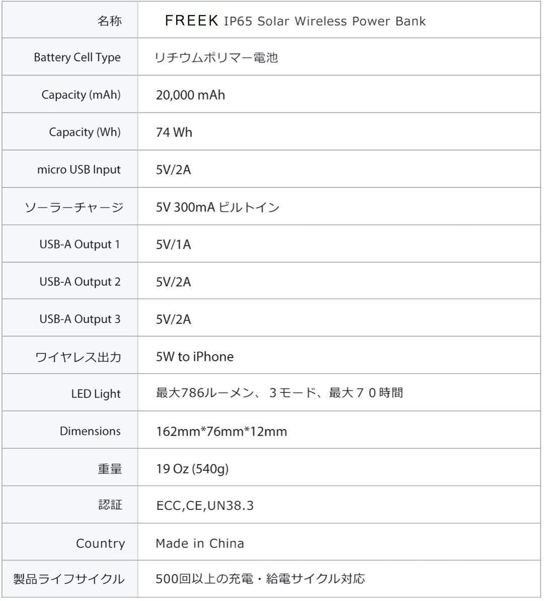 大容量20,000mAhは、FREEKの魅力のひとつです。あなたのデバイスを何度でも充電できます。FREEKひとつで1週間の旅行分の電力を補います。もちろん、世界中の飛行機内に持ち込めます。