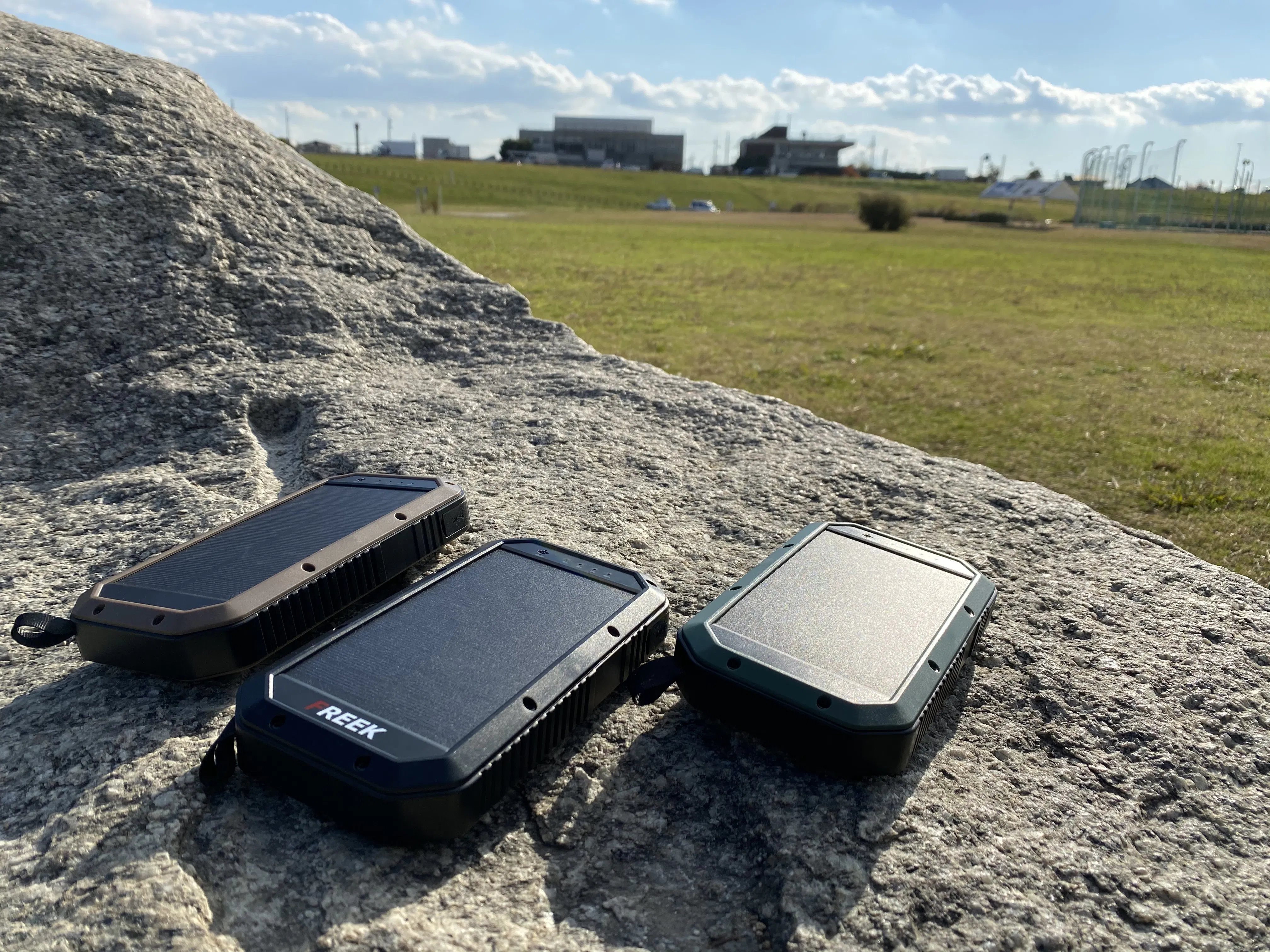 FREEKのソーラーパネルは太陽光があれば、電源がない場所でもセンサーが自動的に感知し、本体に充電を行います。太陽光が当たるところであればいつでも、どこでもソーラー充電を行います。