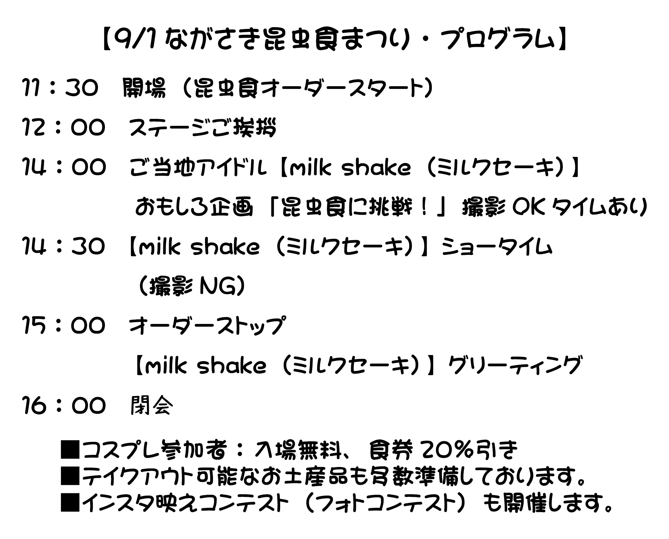 コスプレでご来場の方:「入場無料」「お食事20%引き」!