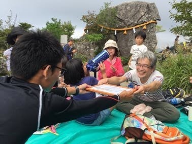 秋は山登り。誰も脱落することなく、宝満山頂上(標高829m)まで登る事ができました。ある受講生の感想は「達成感がハンパない。休みながらでいいから諦めず登れば、いつか頂上に着くはずと思い登った。そうしたら、なんとか登れた。」と。今回は、宝満山頂上でゆうきの卒業祝いもやりました。コーチは子どもや旦那さんまで連れてきて、家族総出でサポートです。
