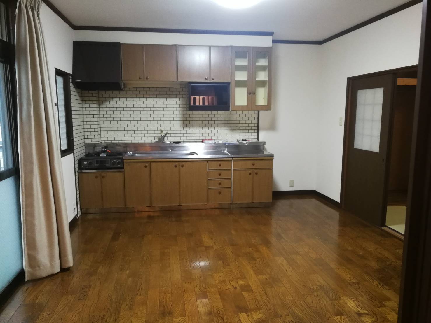 この写真をご覧ください。写真にはガスコンロが写っていますが、以前住んでいた人が置いていった壊れたコンロです。冷蔵庫も電子レンジも何もありませんし、食器棚は空っぽです。