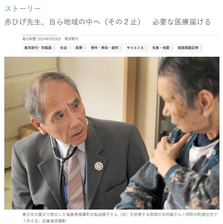 ※毎日新聞『ストーリー︓⾚ひげ先⽣、⾃ら地域の中へ 必要な医療届ける』(9月29日付)