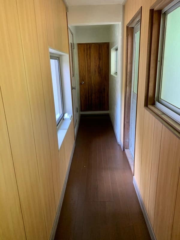 廊下があり、左側に脱衣所とお風呂があります。