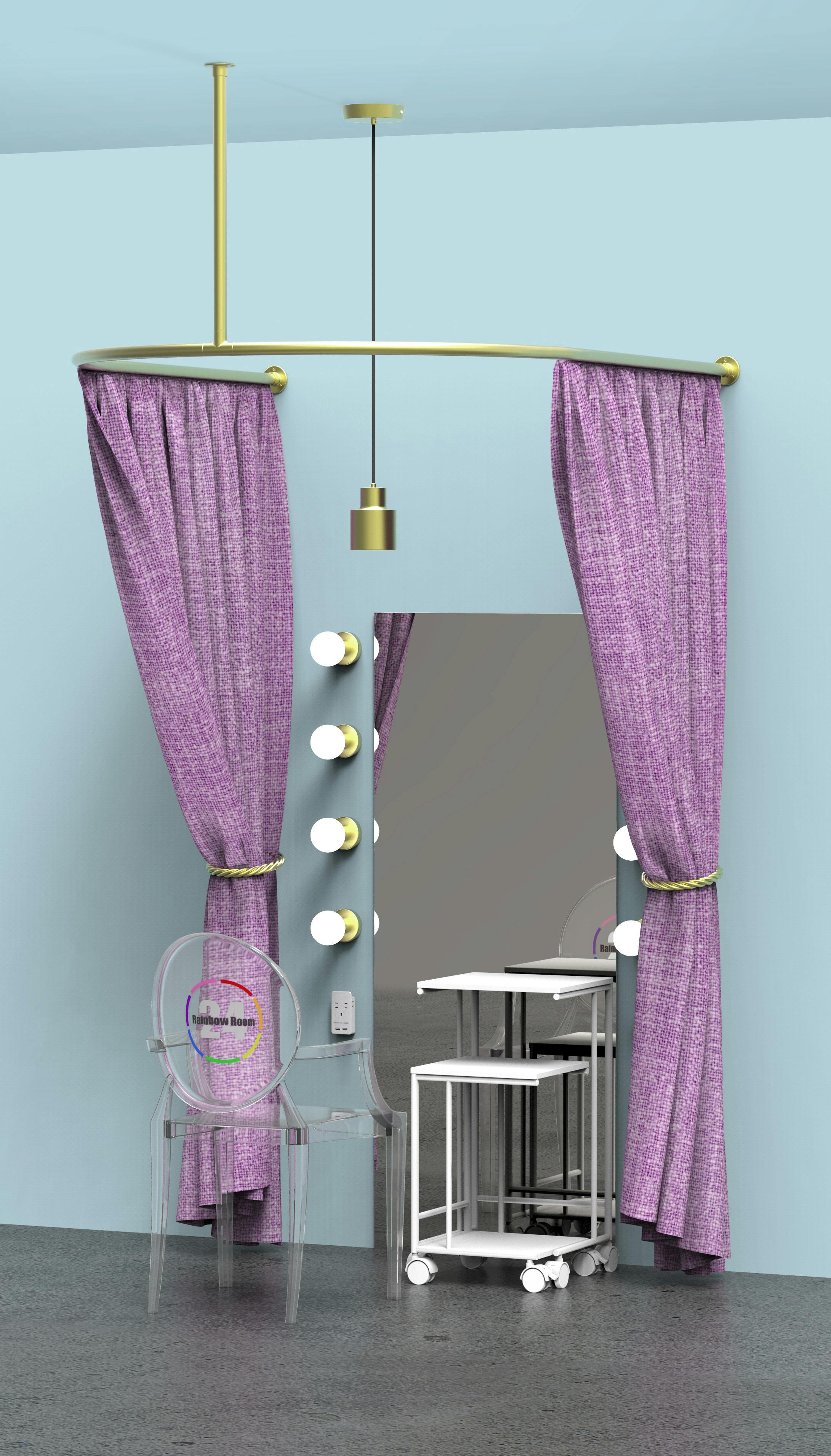☑メイクブースを囲むカーテンが背景としても映える設計で自撮りにも最適。