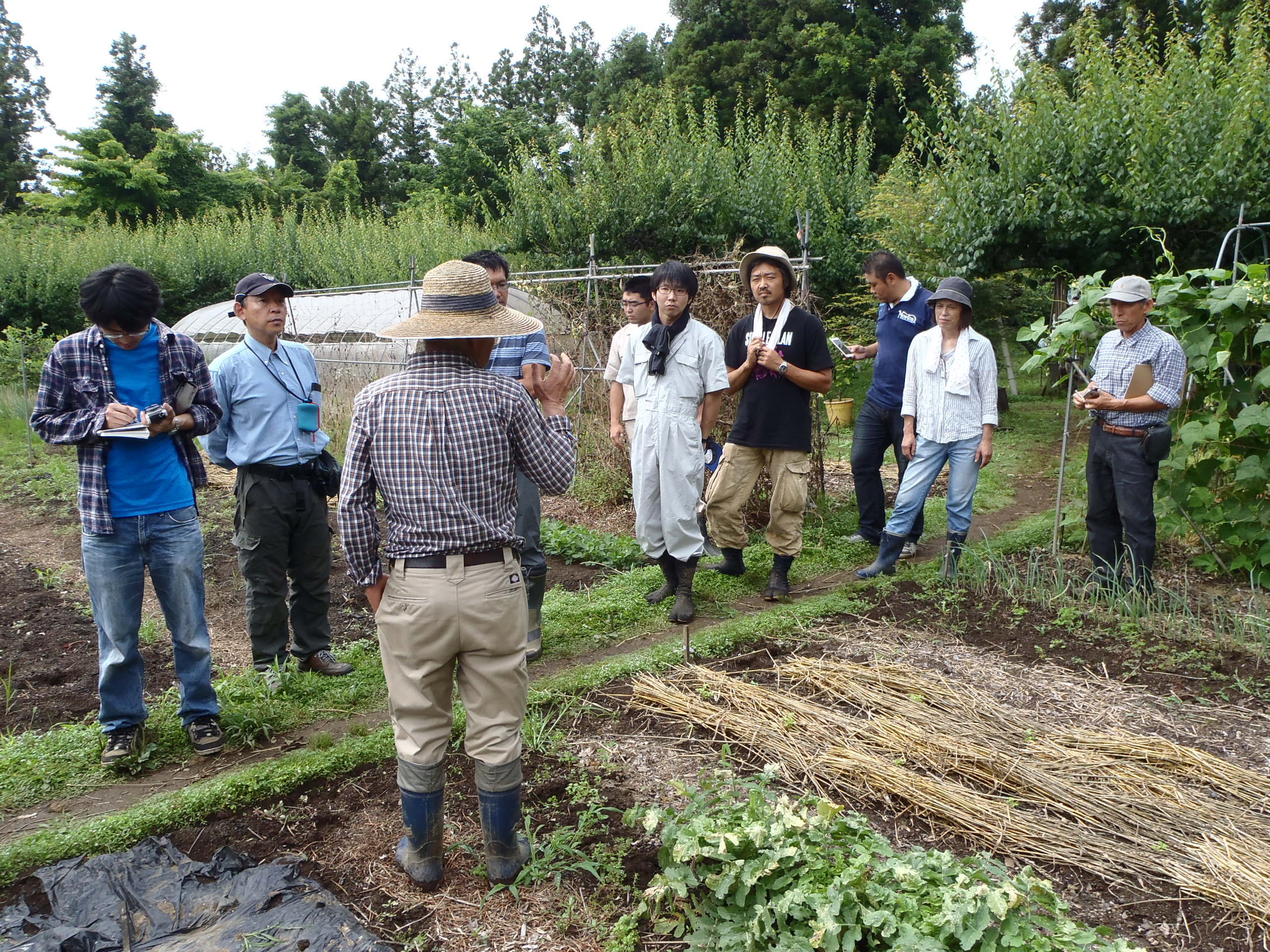 ②月2回の「有機栽培実践講座(有料)」を運営し、延べ100名近い人が受講してくれています。新規に有機農業を志す人の入門講座、家庭菜園を有機栽培したい人の技術講座、地域おこし協力隊員の勉強の場、有機農産物について学びたい人の交流の場になっています。