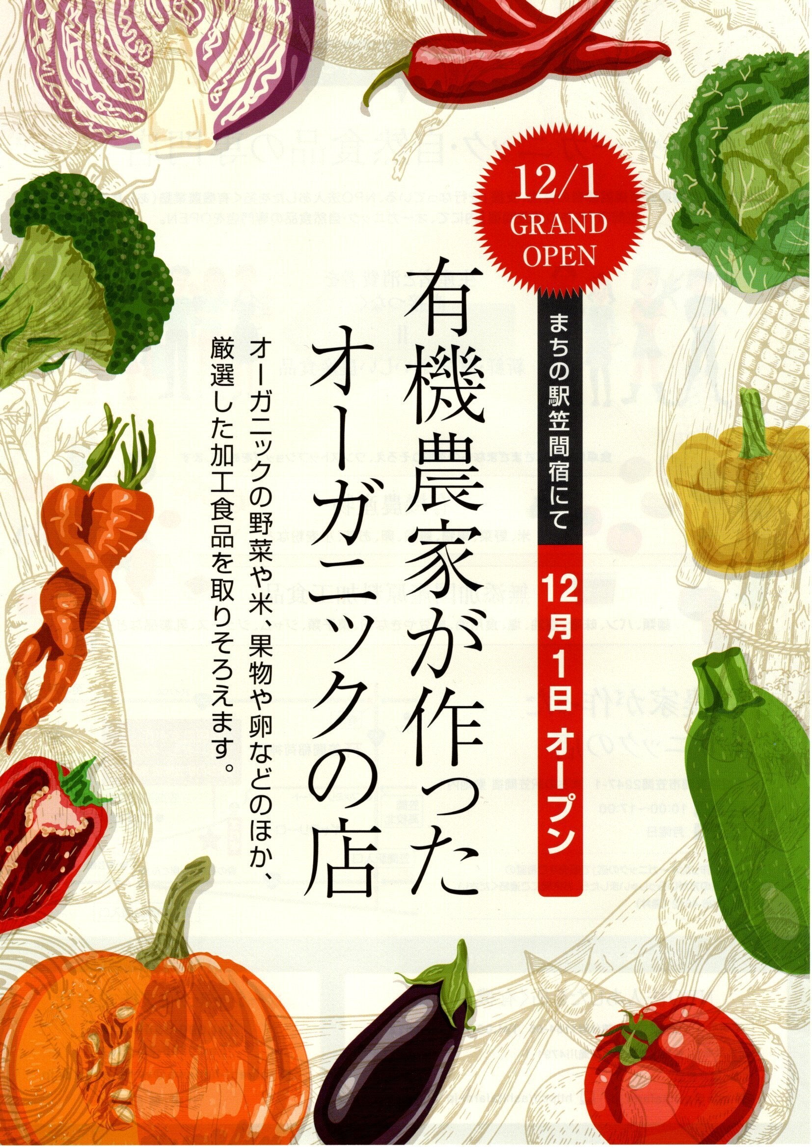 12月1日開店 有機農家が作ったオーガニックの店