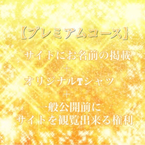 サイトにお名前を掲載+オリジナルTシャツ+一般公開前にサイトを観覧できる権利をお届け致します!