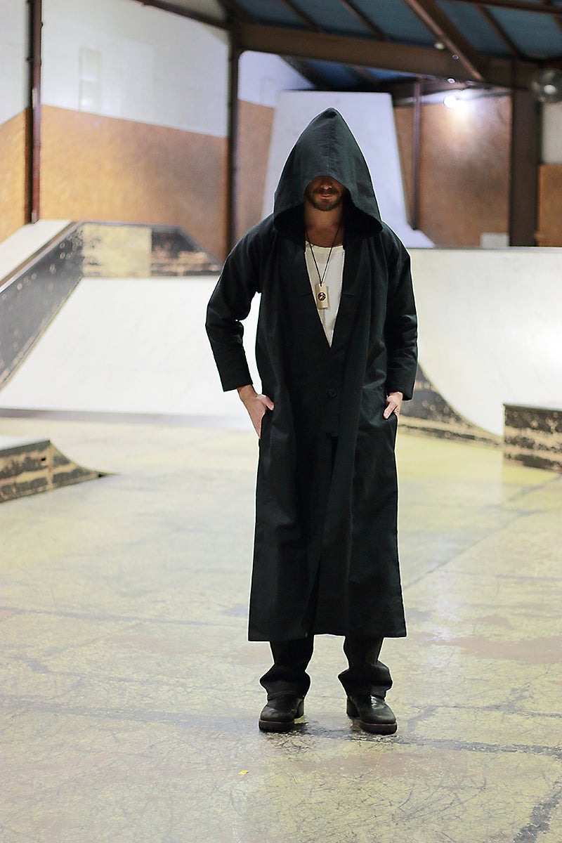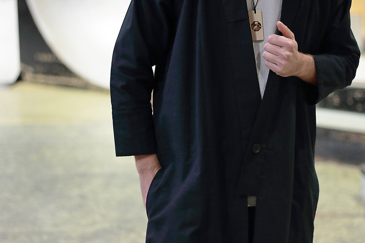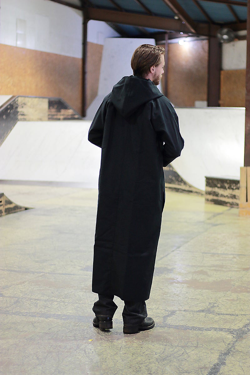 ガバッとかぶれるフードやポケットが付いてる「羽織コート」。スタイリッシュなシルエットにこだわって作りました。
