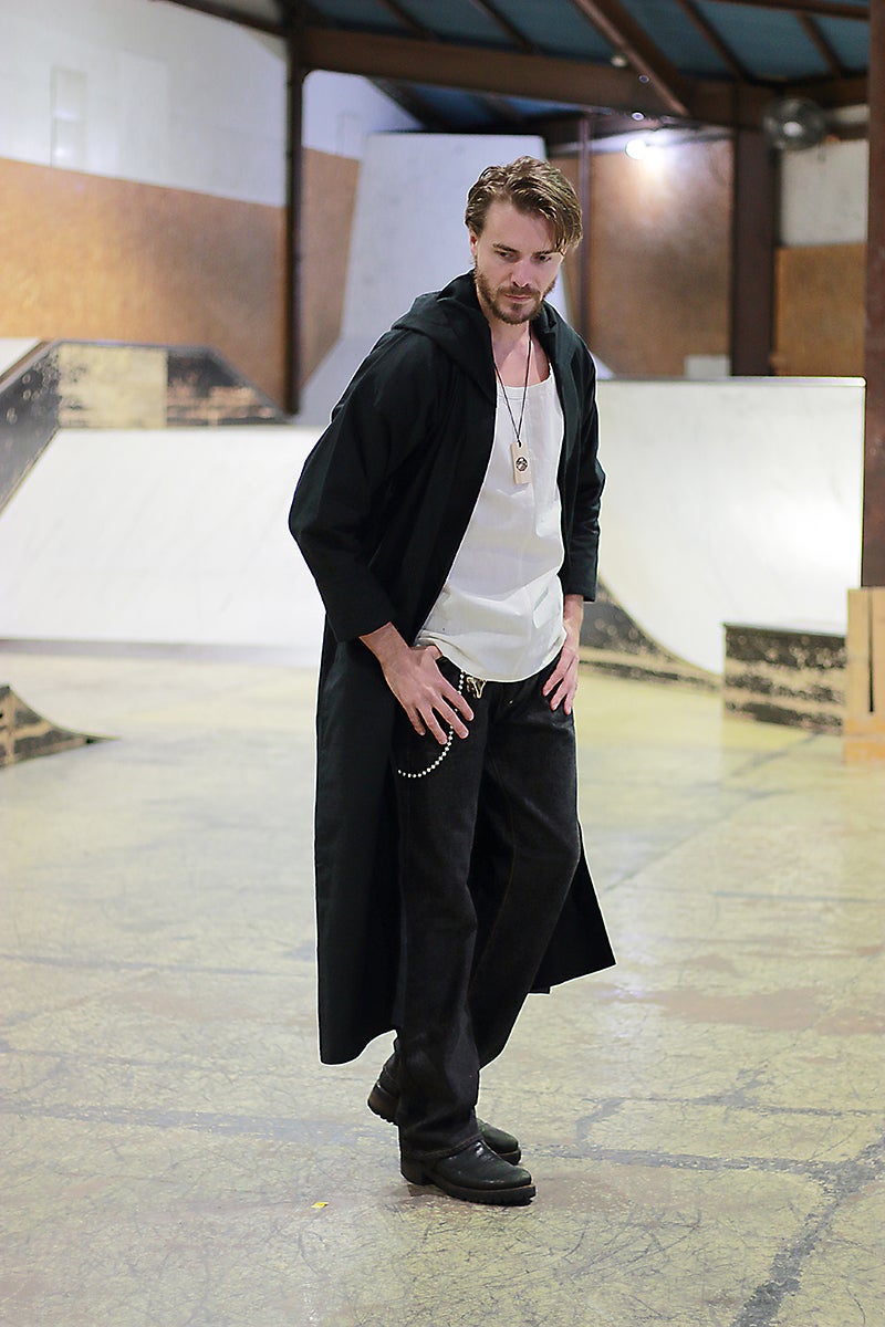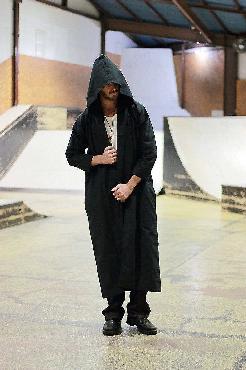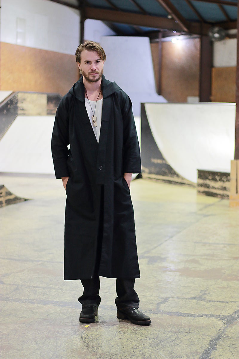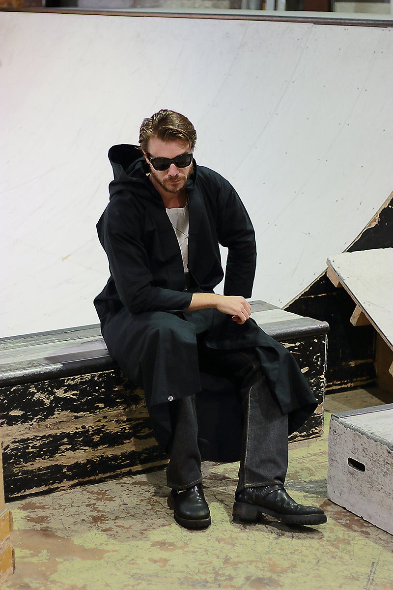 ガバッとかぶれるフードやポケットが付いてる「羽織コート」。スタイリッシュなシルエットにこだわって作りました。