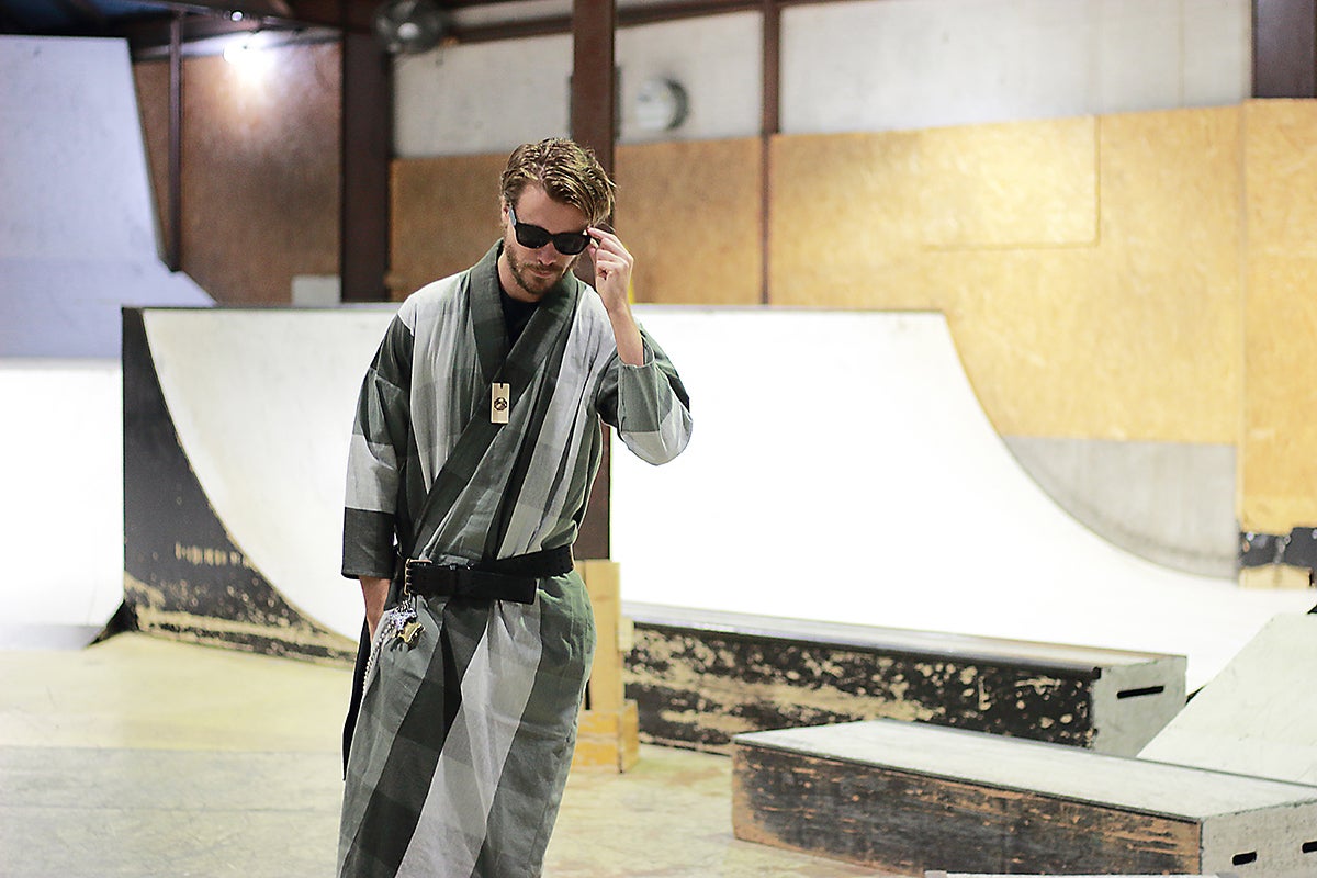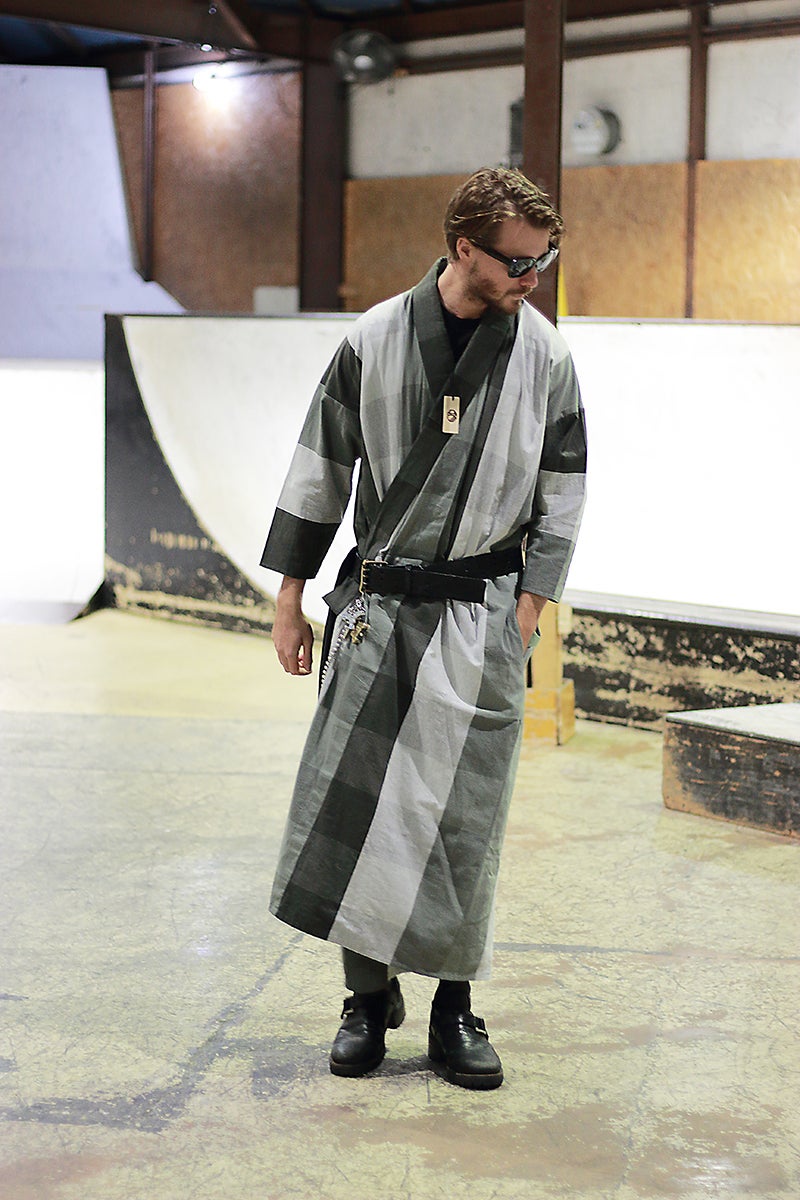 が、京都で和裁士の方と出会い、そのイメージは大きく変わりました。着物の自由さ、ラフさ、楽さ、話せば話すほど「ラフに着られる着物」のイメージが溢れていき、絶対にやる気のなかった「着物」というモノづくりに大きく舵を切ったのです。
