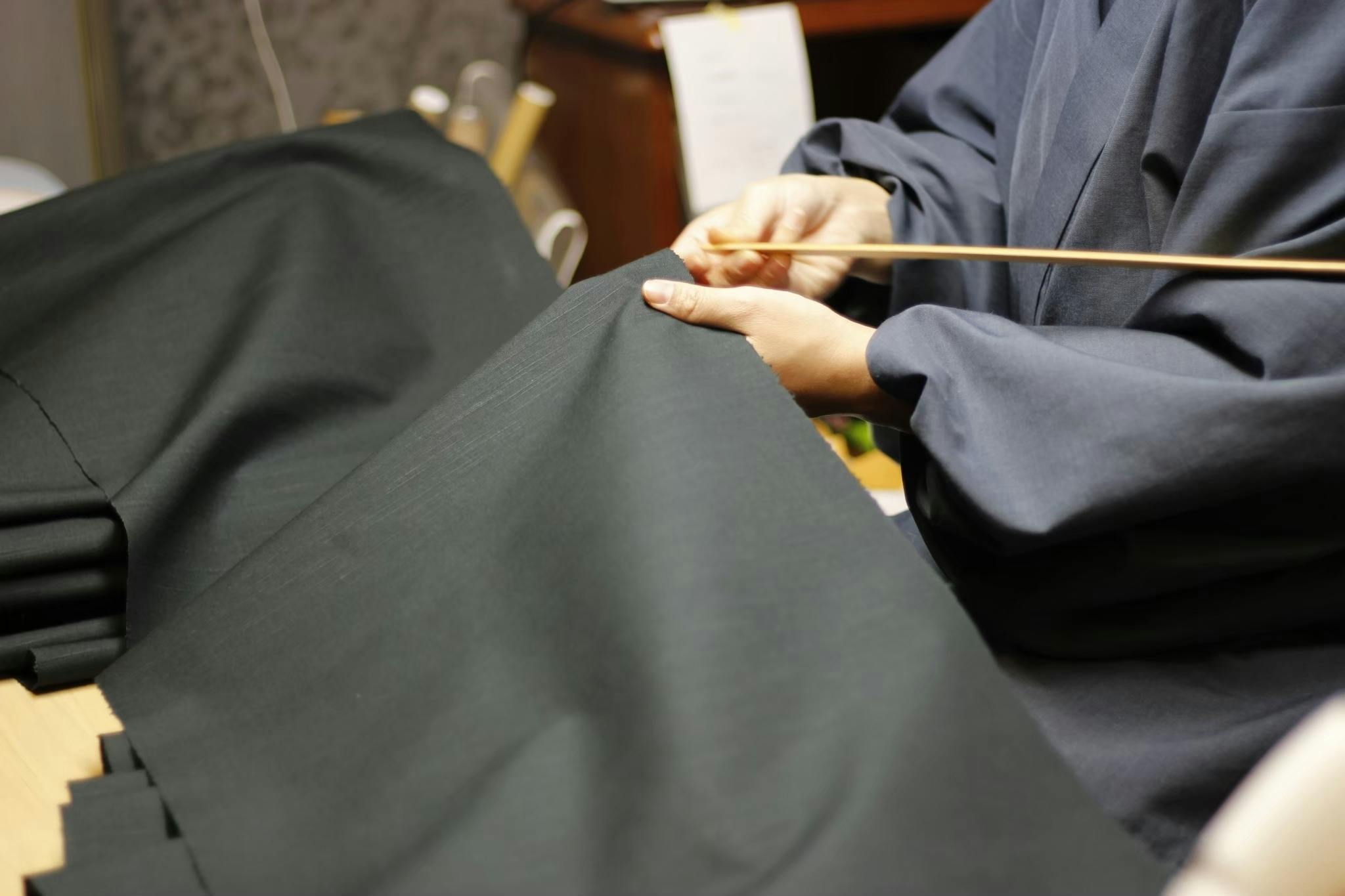 量産では和裁士監修のもと縫製指導に入り、職人が1着1着縫っていきます。